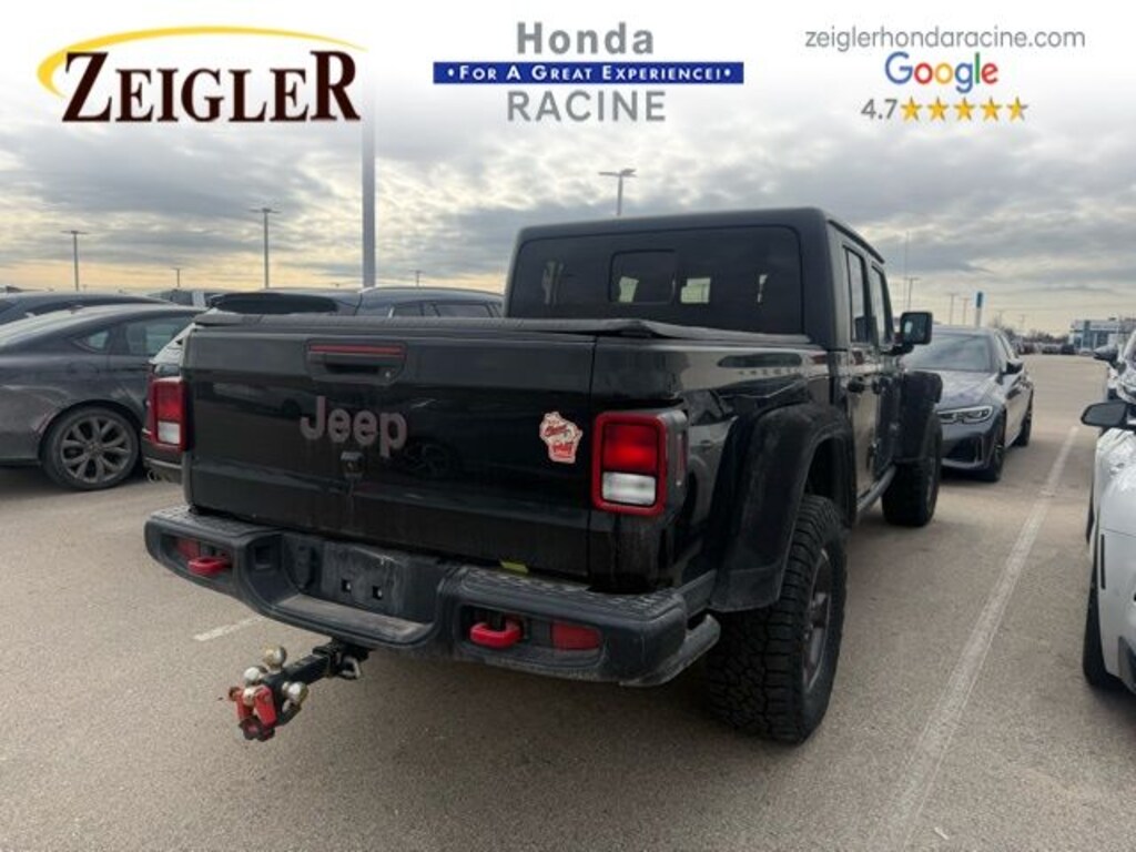2020 Black Clearcoat Jeep Gladiator Rubicon âFOR A GREAT EXPERIENCEâ visit Zeigler Honda of Racine, because we take pride in treating our customers like family, ensuring that your experience is one that you will never forget. We have 4.7 Google Rating! Making our store the highest rated Honda dealer in the state of Wisconsin! Every vehicle has been through a multi-point safety inspection and professionally cleaned and disinfected for your protection. With a convenient location off of I-94 at exit 333; we are proud to serve customers in Racine, Sturtevant, Caledonia, Mount Pleasant, Union Grove, Burlington, Kenosha, Bristol, Waukesha, Milwaukee, Oak Creek and many other surrounding areas! Our Sales Consultants are Factory Certified and have earned some of the highest customer satisfaction ratings in Southeast Wisconsin. We specialize in New Honda, Certified Pre-Owned Honda, as well as many other makes and models that fit all budgets and prices. We offer affordable purchase and leasing options. If you are traveling from Waukegan, Gurnee, Naperville, Pleasant Prairie, Antioch, Fox Lake, or even Madison, feel free to browse our entire inventory of new or pre-owned vehicles right from your home: zeiglerhondaracine.com. Even if we don't have the exact vehicle in our inventory, we will gladly bring one in for you and still guarantee the lowest price possible. A little further than a hop, skip or a jump? We can arrange shipping & delivery! Price may exclude certification, added accessories and/or packages, certain taxes, $399 doc fee, charges and/or fees. Dealer is not responsible for pricing errors, although we strive to be accurate, we are human. The value of used vehicles varies with mileage, usage and condition. Book values should be considered estimates only. Some of our used vehicles may be subject to unrepaired safety recalls. Check for a vehicle's unrepaired recalls by VIN at http://vinrcl.safercar.gov/vin/. See dealer for complete details.