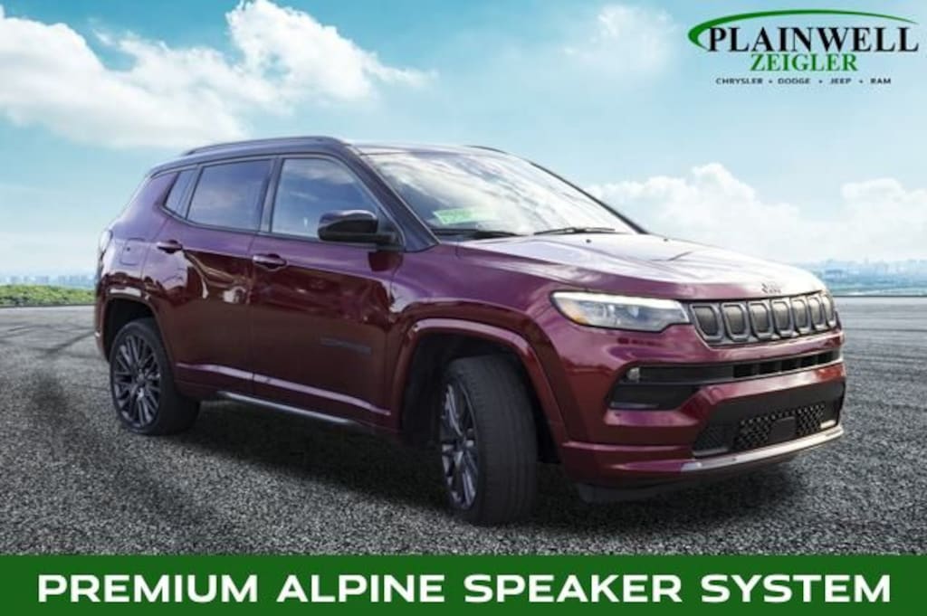 Velvet Red Pearlcoat 2022 Jeep Compass High Altitude 4WD 9-Speed 948TE Automatic 2.4L I4 4WD, 10.1" Touchscreen Display, 4-Wheel Disc Brakes, 4G LTE Wi-Fi Hot Spot, ABS brakes, Air Conditioning, Alexa Built-In, Anti-whiplash front head restraints, Auto High Beam Headlamp Control, Auto High-beam Headlights, Black Headliner, Body Color Door Claddings, Body Color Exterior Sill Moldings, Body Color Fascias, Body Color Wheel Flares, Brake assist, Cluster 10.25" TFT Color Display, Connected Travel & Traffic Services, Delay-off headlights, Disassociated Touchscreen Display, Dual front impact airbags, Dual front side impact airbags, Electronic Stability Control, Emergency communication system: SiriusXM Guardian, For Details, Visit DriveUconnect.com, For More Info, Call 800-643-2112, Four wheel independent suspension, Front Bucket Seats, Front dual zone A/C, Front fog lights, Global Telematics Box Module (TBM), Gloss Black Exterior Mirrors, Gloss Black Surround/Neutral Gray Rings, GPS Navigation, Gray Day Light Opening Moldings, HD Radio, Heated front seats, High Altitude Package, Integrated Voice Command w/Bluetooth, Leather Trimmed Bucket Seats, LED Low/Highbeam Projector Headlamps, Liquid Chrome/Chainmail Hydro Accent, Neutral Gray Exterior Accents, Neutral Gray Exterior Badging, Neutral Gray Side Roof Rails, Panic alarm, ParkView Rear Back-Up Camera, Power driver seat, Power Front/Fixed Rear Full Sunroof, Power steering, Power windows, Premium Alpine Speaker System, Premium LED Fog Lamps, Premium Taillamps, Quick Order Package 2GF High Altitude, Radio: Uconnect 5 Nav w/10.1" Display, Rain sensing wipers, Rear window defroster, Rear window wiper, Remote keyless entry, Roof rack: rails only, Security system, SiriusXM Guardian - Included Trial (B), SiriusXM Radio Service, SiriusXM Satellite Radio, SiriusXM w/360L, Speed control, Split folding rear seat, Spoiler, Steering wheel mounted audio controls, Traction control, Tungsten Accent Stitching, Turn signal indicator mirrors, Variably intermittent wipers, Wheels: 19" x 7.5" Aluminum Painted.
