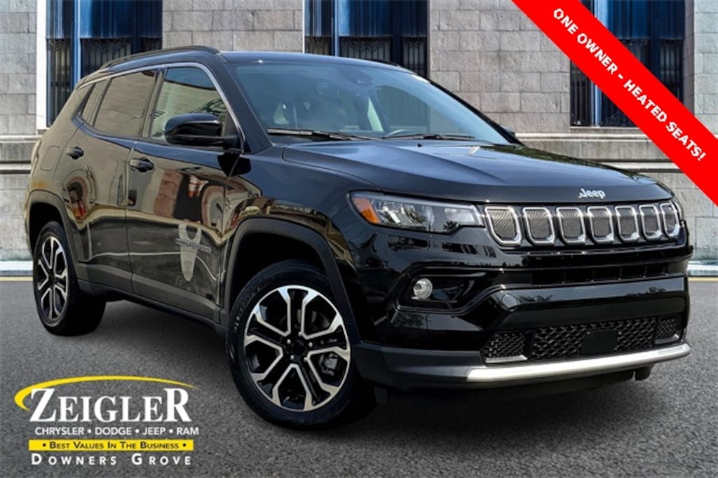 2022 Jeep Compass Limited Diamond Black Crystal Pearlcoat **LEATHER**, **BLUE TOOTH**, **HEATED STEERING WHEEL**, **PARKVIEW REAR BACK-UP CAMERA**, **ONE OWNER**, **PARKSENSE REAR PARK ASSIST**, **HEATED SEATS**,, 4WD, Quick Order Package 2GG. 22/30 City/Highway MPG 22/30 City/Highway MPG The value of used vehicles varies with mileage, usage and condition. Book values should be considered estimates only. Some of our used vehicles may be subject to unrepaired safety recalls. Check for a vehicle's unrepaired recalls by VIN at http://vinrcl.safercar.gov/vin/