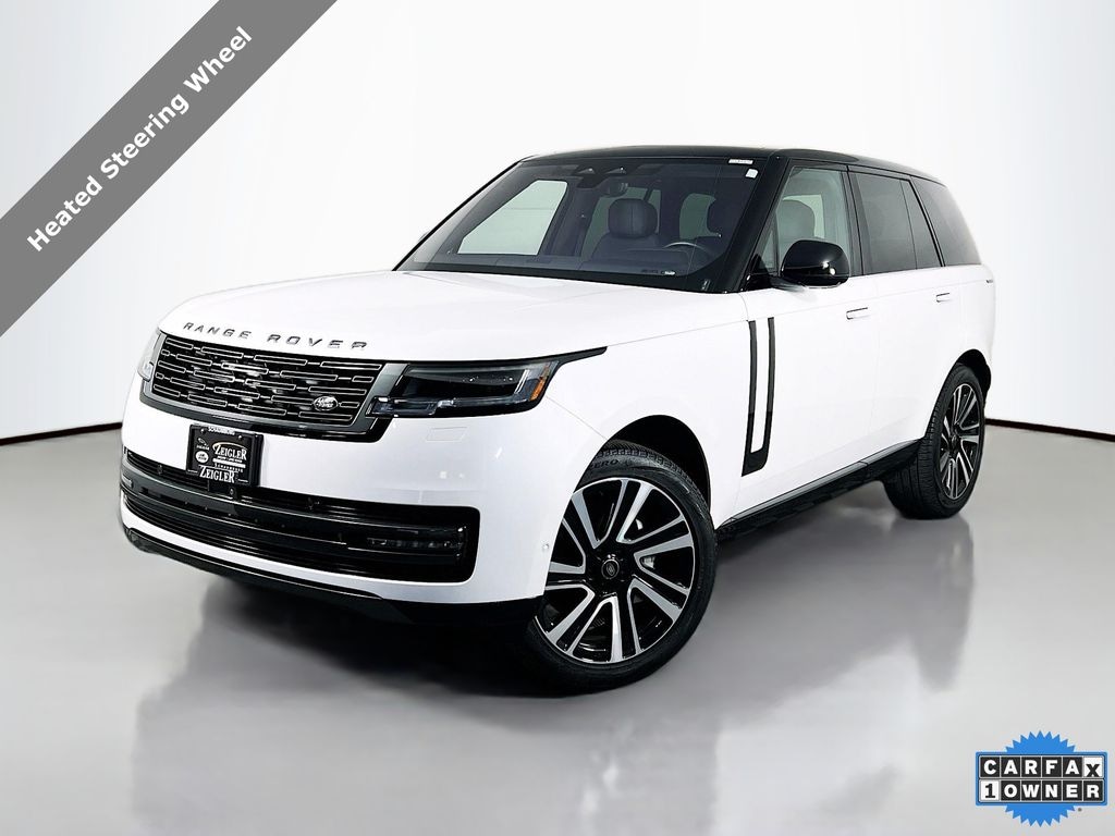 Recent Arrival! Black Contrast Roof, Ebony Morzine Headlining, Gloss Grand Black Veneer Trim Finisher, Heated Steering Wheel, Heated Windscreen, Power moonroof, Premium Interior Protection & Storage Pack, Shadow Exterior Pack, Wheels: 22" Diamond Turned w/Black Contrast. 2023 Land Rover Range Rover SE Ostuni Pearl White.
