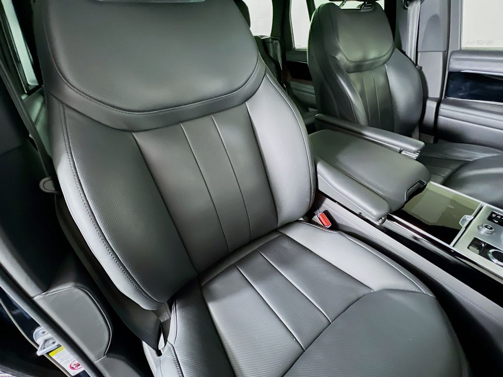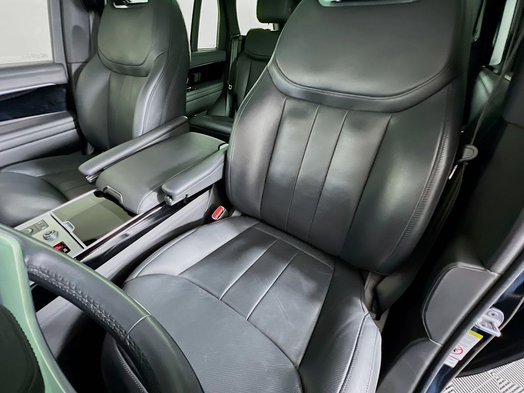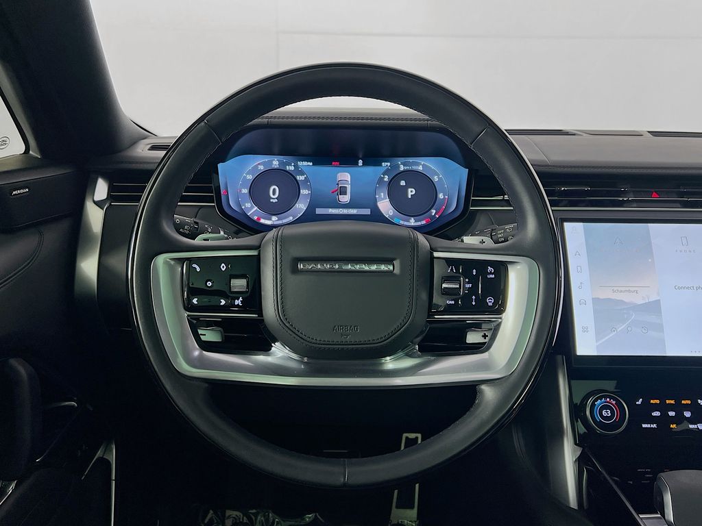 The cabin is upholstered in perforated Windsor leather, featuring twenty way heated electric front seats and power recline heated rear seats. Three zone climate control allows passengers to set their preferred temperatures independently. For an immersive audio experience, the Meridian sound system delivers crisp, clear acoustics throughout the interior. Added conveniences include soft door close, a powered gesture tailgate, and wireless device charging.