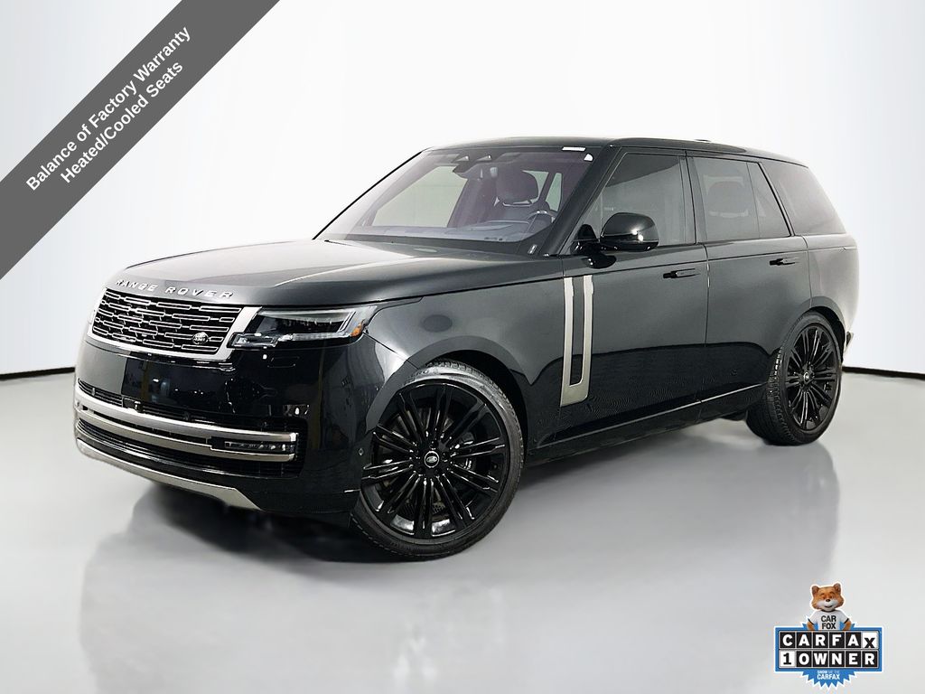 Recent Arrival! 24-Way Htd/Cooled Massage Electric Fr Bucket Seats, Black Brake Calipers, Cabin Air Purification Pro, Clear Sight Interior Rear View Mirror, Domestic Plug Socket, Front Center Console Refrigerator Compartment, Gloss Grand Black Veneer Trim Finisher, Head-Up Display, Heated Steering Wheel, Hot Climate Pack, Park Assist, Pixel LED Headlights w/Signature DRL, SV Bespoke Gloss Wood & Leather Steering Wheel, Technology Pack, Wheels: 23" Gloss Black (Style 1075). 2023 Land Rover Range Rover SE Santorini Black Metallic.