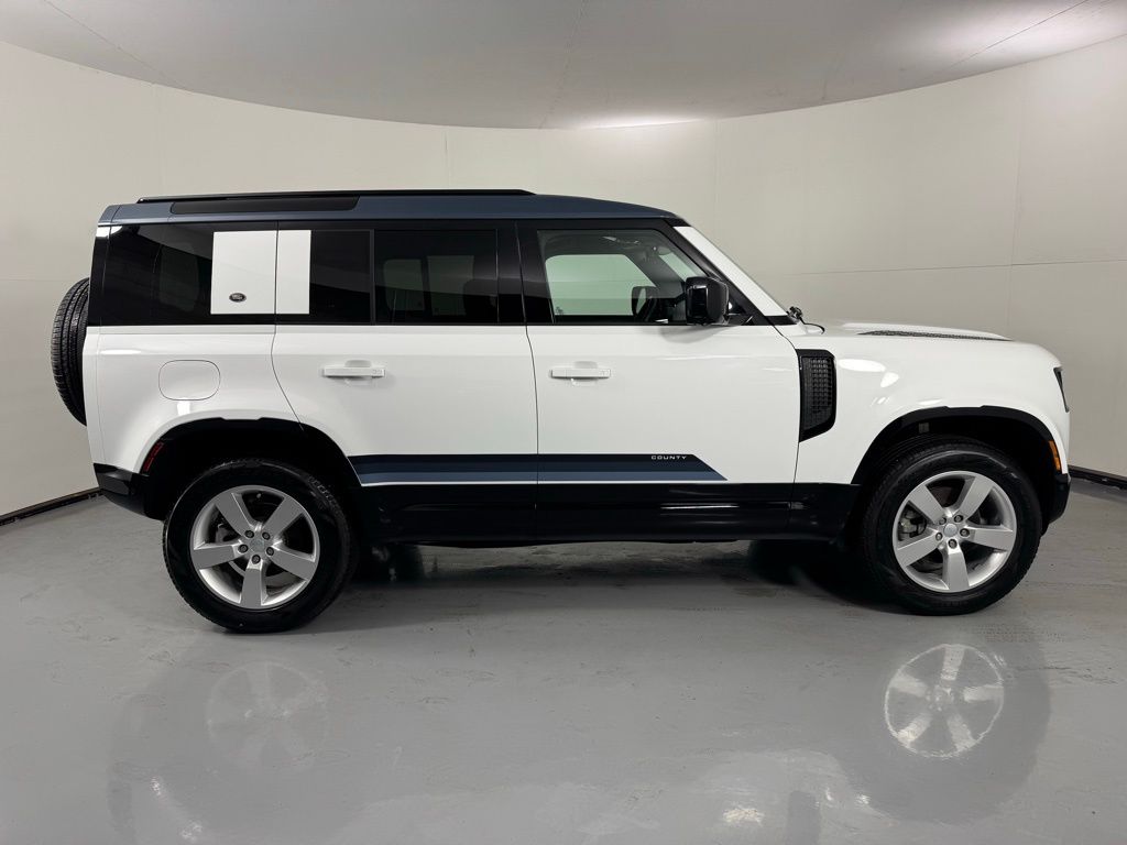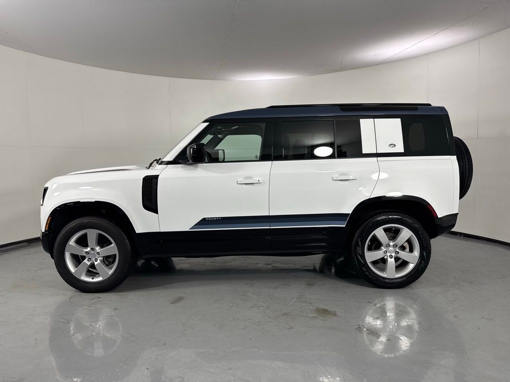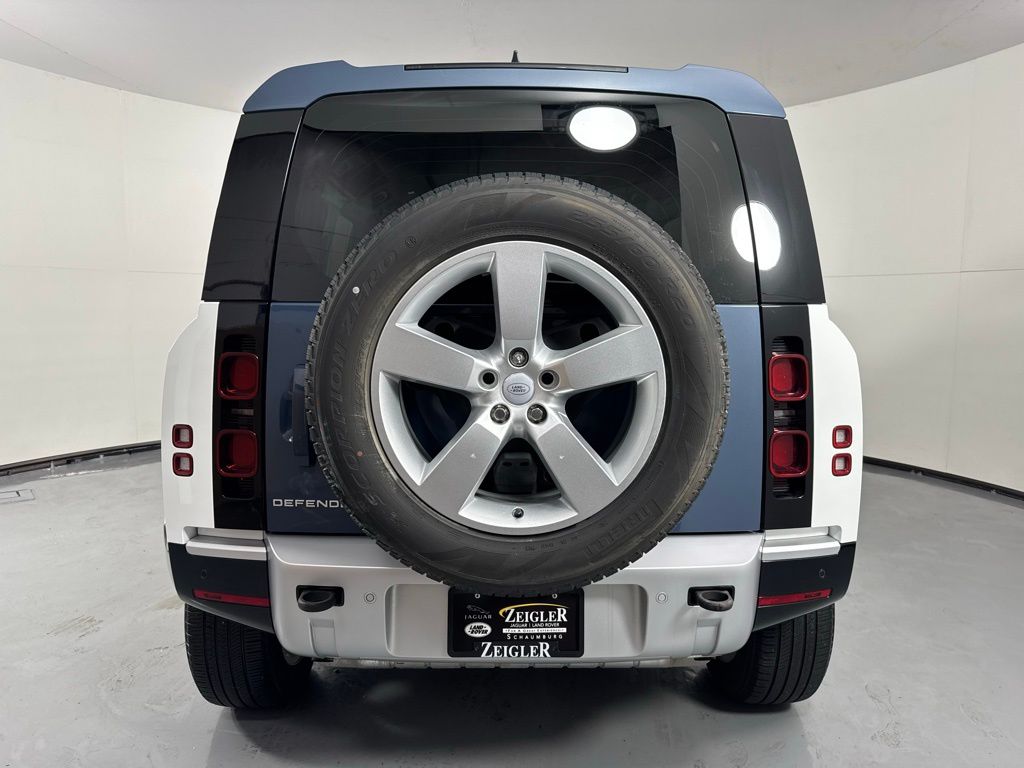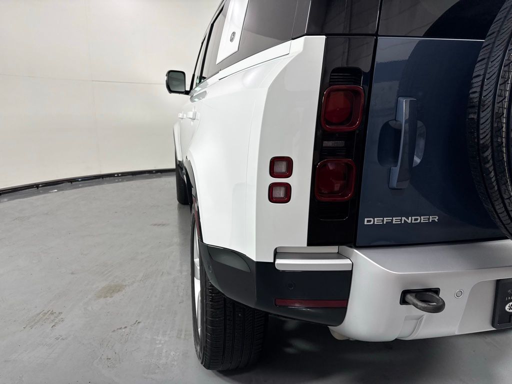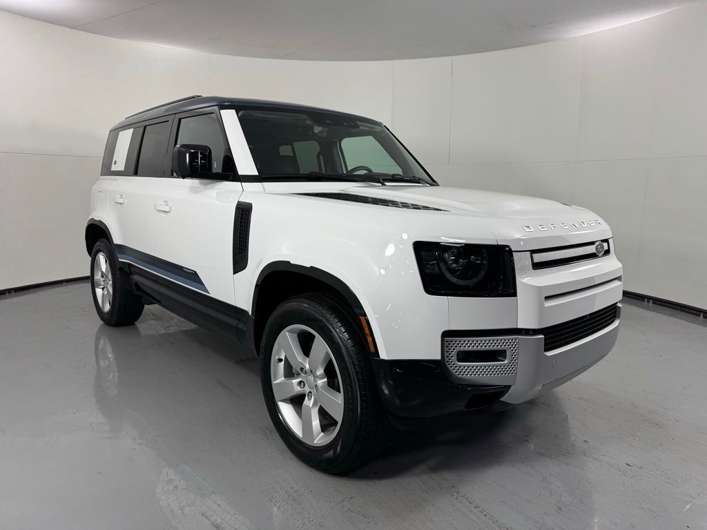 Reaquired Vehicle. Balance of Factory Warranty. Recent Arrival! 3-Zone Climate Control, Air Quality Sensor, Cabin Air Purification Plus, Comfort & Convenience Pack, Contrast Roof, Contrast Tail Door, County Exterior Pack, County Illuminated Treadplate, County Side Decal, Head-Up Display, Navigation system: Connected Navigation PIVI Pro, Power moonroof, Premium Cabin Lighting, Refrigerated Center Console, Twin Front Cupholders w/Cover, Wheels: 20" Gloss White Style 9013, Wheels: 20" Polished Silver Style 5098. 2024 Land Rover Defender 110 S Fuji White