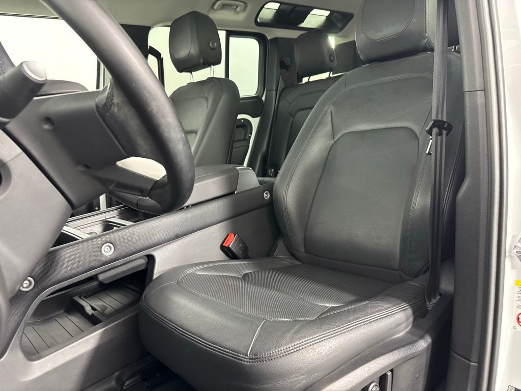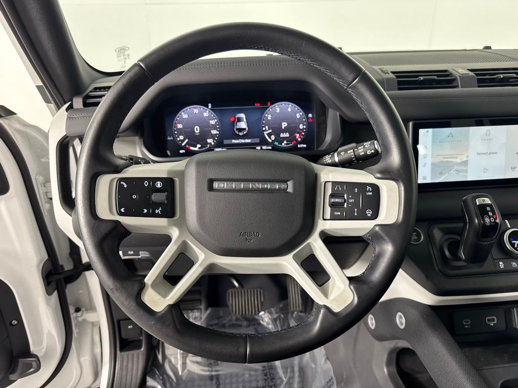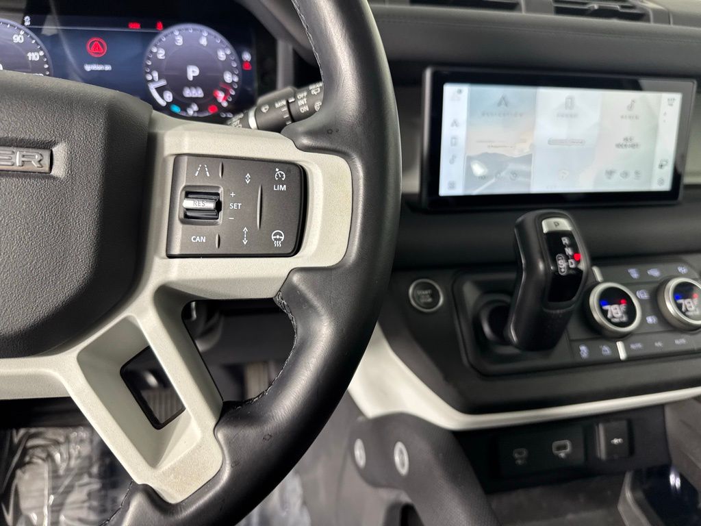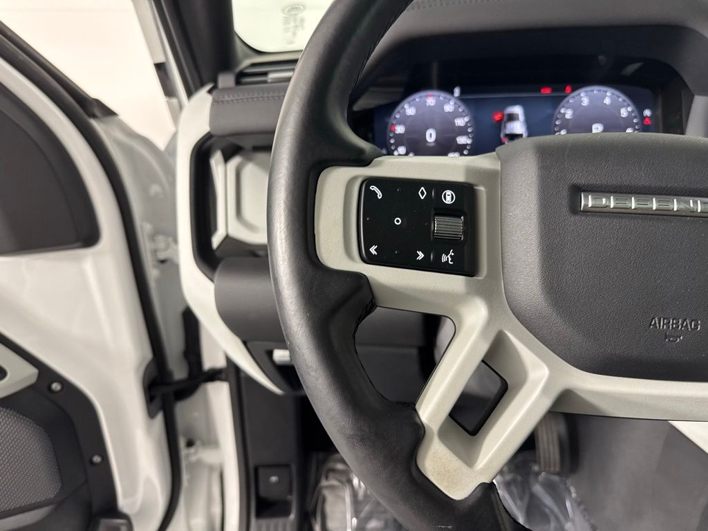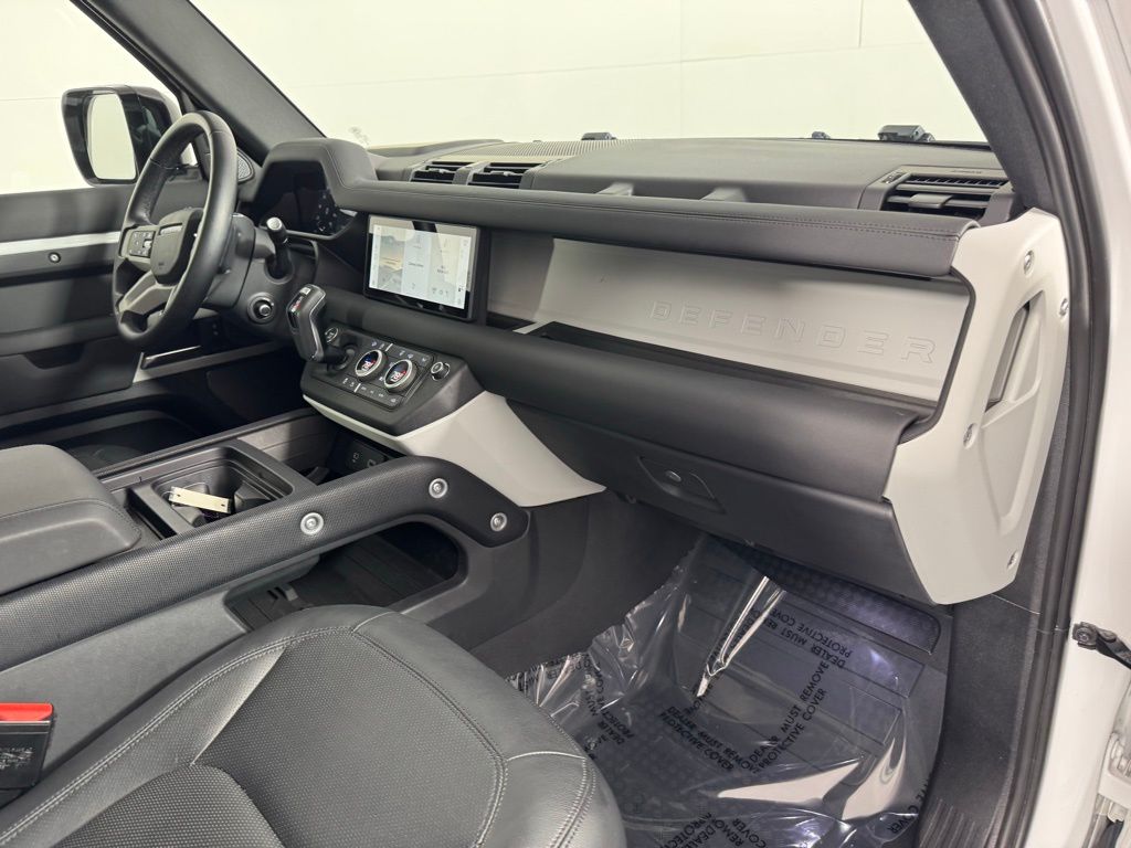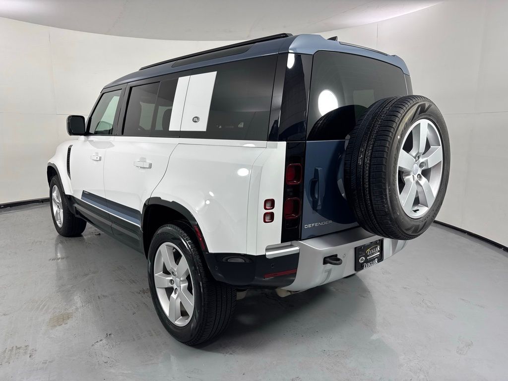 Reaquired Vehicle. Balance of Factory Warranty. Recent Arrival! 3-Zone Climate Control, Air Quality Sensor, Cabin Air Purification Plus, Comfort & Convenience Pack, Contrast Roof, Contrast Tail Door, County Exterior Pack, County Illuminated Treadplate, County Side Decal, Head-Up Display, Navigation system: Connected Navigation PIVI Pro, Power moonroof, Premium Cabin Lighting, Refrigerated Center Console, Twin Front Cupholders w/Cover, Wheels: 20" Gloss White Style 9013, Wheels: 20" Polished Silver Style 5098. 2024 Land Rover Defender 110 S Fuji White