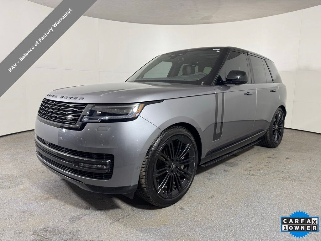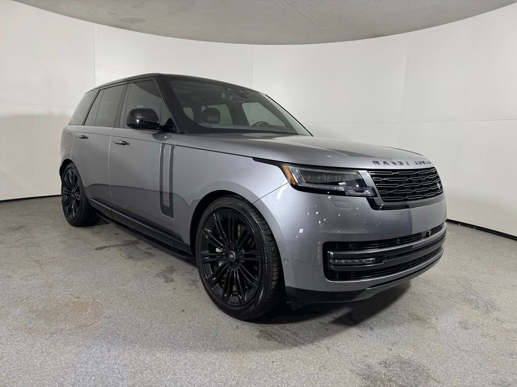 Reaquired Vehicle. Balance of Factory Warranty. 20-Way Heated/Ventilated Electric Fr Bucket Seats, Black Contrast Roof, ClearSight Interior Rear-View Mirror, Deployable Side Steps (RR009), Exterior Parking Camera Rear, Front reading lights, Garage door transmitter: HomeLink, Genuine wood console insert, Genuine wood door panel insert, Head-Up Display, Headlight cleaning, Heated front seats, Heated rear seats, Heated steering wheel, Leather steering wheel, Navigation system: Pivi Pro Connected Navigation, Panic alarm, Perforated Windsor Leather Seat Trim, Pixel LED Headlights w/Signature DRL, Power moonroof, Radio: Meridian 3D Surround Sound System, Rain sensing wipers, Security system, Speed-Sensitive Wipers, Ventilated front seats, Ventilated rear seats, Wheels: 23" 10 Split-Spoke Gloss Black. 2024 Land Rover Range Rover SE Eiger Gray Met