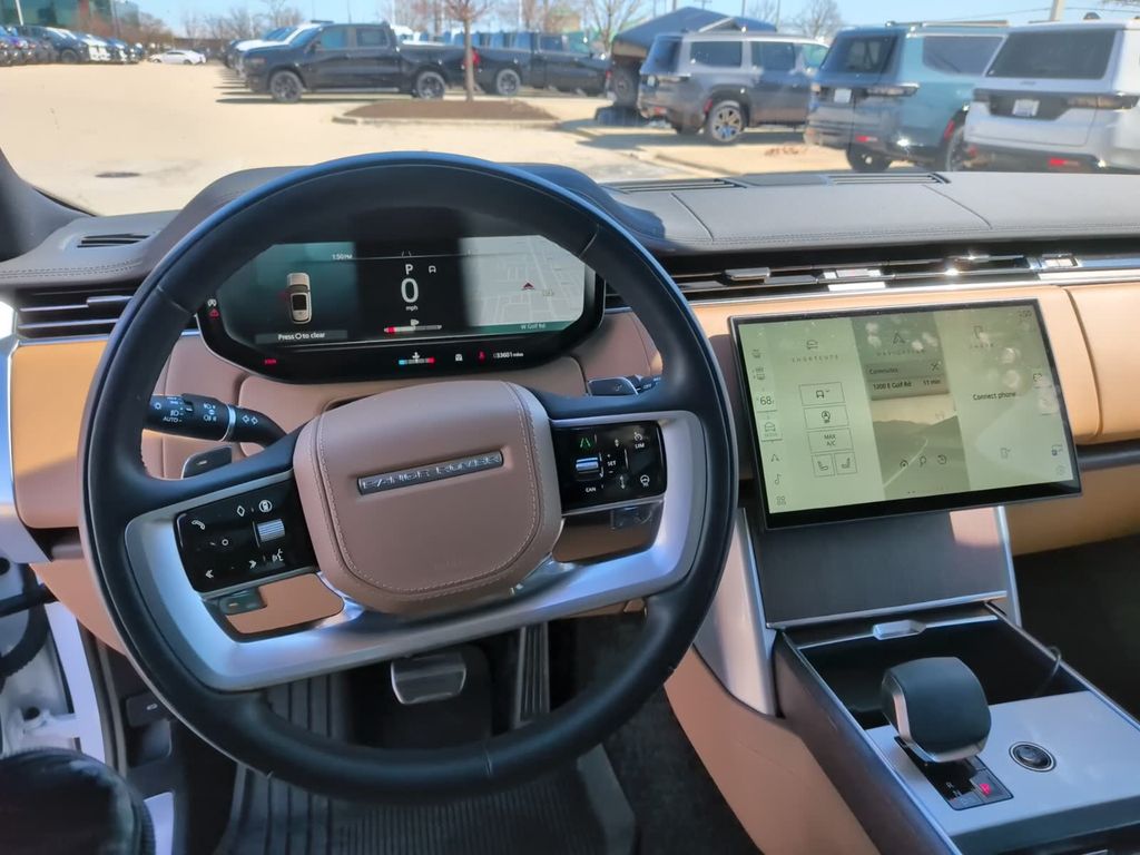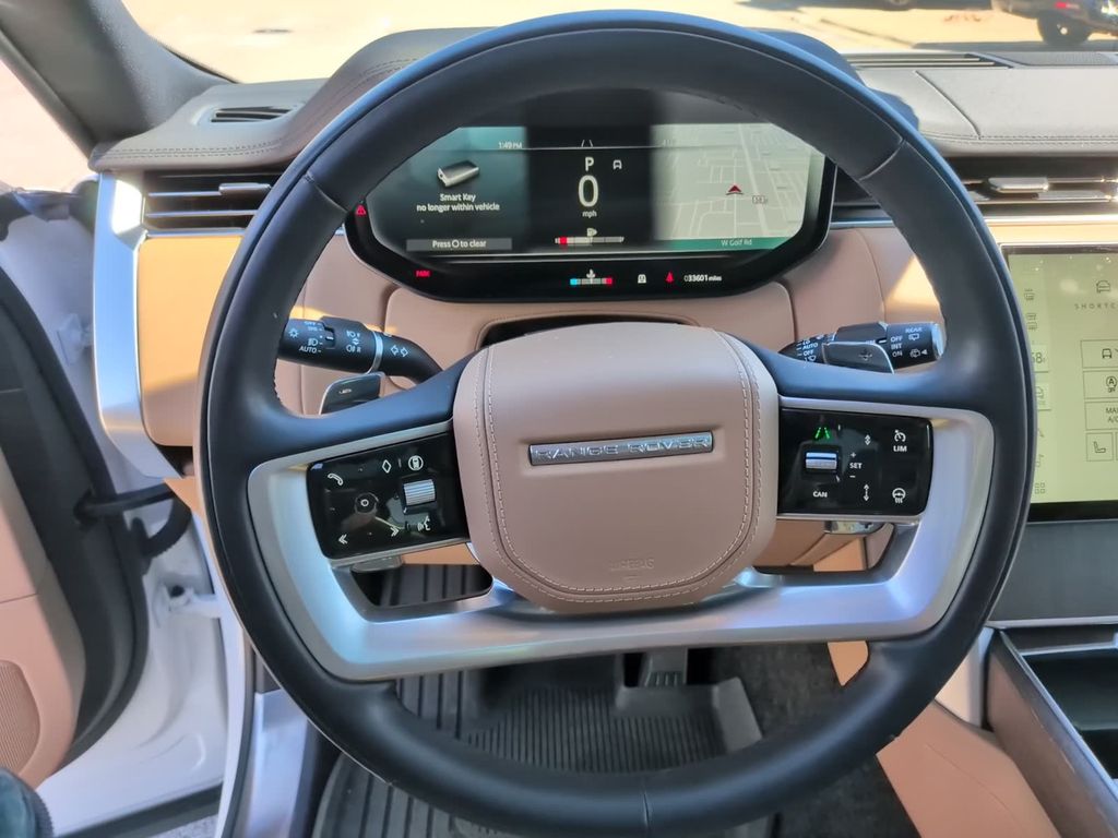 CARPLAY/ ANDROID AUTO*, BLUETOOTH*, NON-SMOKER*, AWD*, HEAD-UP DISPLAY*, ONE OWNER*, CLEAN CARFAX*, PANORAMIC SUNROOF*, BACKUP CAMERA*, BLINDSPOT*, NEW BRAKES*, NEW TIRES*, HEATED SEATS*, GPS NAVIGATION*, 22" WHEELS*, POWER LIFTGATE*, PREMIUM LIGHTING*, PREMIUM SOUND*, Caraway/Caraway w/Perforated Semi-Aniline Leather Seat Trim, 4-Wheel Disc Brakes, ABS brakes, Adaptive suspension, Air Conditioning, Apple CarPlay & Android Auto, Exterior Parking Camera Rear, Front Bucket Seats, Memory seat, Power driver seat, Power steering, Power windows, Remote keyless entry, Steering wheel memory, Steering wheel mounted A/C controls, Tachometer, Telescoping steering wheel, Tilt steering wheel, Trip computer. CARFAX One-Owner. 2024 Land Rover Range Rover SE AWD Fuji White