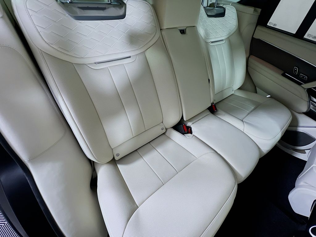 The exterior is defined by the rare Obsidian Black Satin paint, a matte-like finish that highlights the Range Roverâs minimalist "reductionist" design. The SV Serenity Exterior Accents add exclusive metal-plated details to the grille and badging, while the power-deployable side steps maintain a clean profile when not in use. Inside, the cabin features the high-end SV Perlino Semi-Aniline leather, offering a bright, airy contrast to the dark exterior.