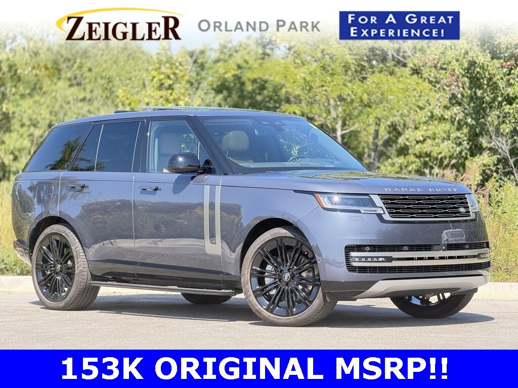 2025 Land Rover Range Rover SE ONE OWNER, LOCAL TRADE, LOW LOW MILES, HD RADIO, POWER SEATS, FOLD REAR SEATS, FRONT VENTILATED SEATS, HEATED FRONT SEATS, HEATED REAR SEATS, HEATED STEERING WHEEL, HEAD-UP DISPLAY, PARKING ASSISTANT, Deployable side steps, Illuminated seat belt buckles, Suspension Elec Air w/ARC, Comfort & Wellbeing Pack, Premium Upgrade Interior Pack, $153,750 MSRP!!! MASSIVE STICKER!!, Caraway/Caraway w/Perforated Semi-Aniline Leather Seat Trim, 20-Way Heated/Ventilated Electric Fr Bucket Seats, 4-Zone Climate Control, Adaptive suspension, AM/FM radio: SiriusXM w/360L, Anti-whiplash front head restraints, Apple CarPlay & Android Auto, Auto-dimming Rear-View mirror, Auto-Folding Loadspace Cover, Cabin Air Purification Pro, Cold Climate Pack, Comfort Pack, Convenience Pack, Delay-off headlights, Driver's Seat Mounted Armrest, Dual front side impact airbags, Electric Rear Side Window Sunblinds, Electronic Air Suspension, Electronic Stability Control, Exterior Parking Camera Rear, Four wheel independent suspension, Front Center Console Refrigerator Compartment, Fully automatic headlights, Garage door transmitter: HomeLink, Genuine wood console insert, Head restraints memory, Head-Up Display, Heated front seats, Heated steering wheel, Heated Washer Jets, Heated Windscreen, Laminated Front & Rear Side Glass, Loadspace Partition Net, Low tire pressure warning, Overhead airbag, Passenger seat mounted armrest, Power passenger seat, Powered Gesture Tailgate/Boot Lid, Premium Upgrade Interior Pack, Rear window wiper, Solar Attenuating Windscreen, Speed-sensing steering, Steering wheel mounted A/C controls, Steering wheel mounted audio controls, SV Bespoke Carpet Mats, SV Bespoke Full Extended Leather Upgrade, Twin-Blade Sunvisors w/Illuminated Vanity Mirrors, Ventilated front seats, Versatile Loadspace Floor, Weather band radio. Varesine Blue Metallic ZF 8-Speed Automatic AWD 4.4L V8 Twin Turbocharged