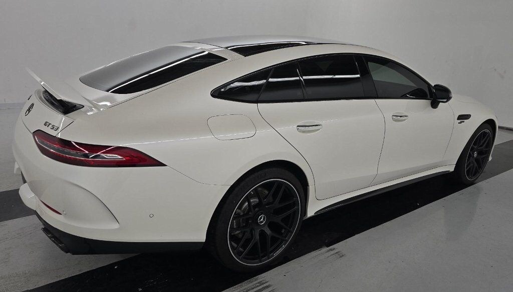 15V Socket, 2nd Row Folding Bench Seat (3 Seats), Active Brake Assist w/Cross-Traffic Function, Active Distance Assist DISTRONIC®, Active Emergency Stop Assist, Active Lane Change Assist, Active Lane Keeping Assist, Active Multicontour Front Seats w/Massage Function, Active Speed Limit Assist, Active Steering Assist, Air Balance Package, AMG® Exterior Carbon Fiber Package 1, AMG® Light Display, AMG® Line Package, AMG® Night Package (P60), AMG® Performance Exhaust System, Black Exhaust Tips, Black Front Splitter, Black Mirror Covers, Black Rear Diffuser Insert, Black Side Sill Inserts, Black Window Trim, Blind Spot Assist, Dark Tinted Grille, Driver Assistance Package (23P), Evasive Steering Assist, Exclusive Nappa Leather Upholstery, Extended Night Package, Exterior Elements in Black, Exterior Lettering in Black, Fixed Panorama Roof, Head-Up Display w/AMG® Specific Content, Heated & Ventilated Front Seats, Heated Front Door Panels & Armrests, Heated Steering Wheel, Manual Rear Window Sunshade, MANUFAKTUR Black Microfiber Headliner, PRE-SAFE® PLUS Rear-End Collision Protection, Rapid Heating Front Seats, Route-Based Speed Adaptation, Warmth & Comfort Package, Wheel Locking Bolts, Wheels: 10" x 21" Fr/11.5" x 21" Rr AMG® Forged. 2022 Mercedes-Benz AMG® GT 53 Base 4MATIC® 4MATIC® MANUFAKTUR Diamond White Metallic 4MATIC® 9-Speed Automatic I6