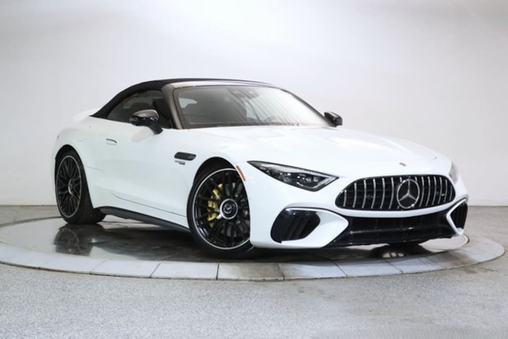 Black w/Nappa Leather Upholstery, AMG® ACTIVE RIDE CONTROL Suspension, AMG® DYNAMIC PLUS Package, AMG® Line Package, Augmented Video, Dark Light Package, Driver Assistance Package, Front Axle Lift System, Heads-Up Display, Performance Trim Line, Wheel Locking Bolts, Wheels: 21" AMG® Forged Cross-Spoke Black. 2022 Mercedes-Benz SL-Class SL 55 AMG® 4MATIC® 4MATIC® MANUFAKTUR Moonlight White Metallic 4MATIC® 9-Speed Automatic 4.0L V8