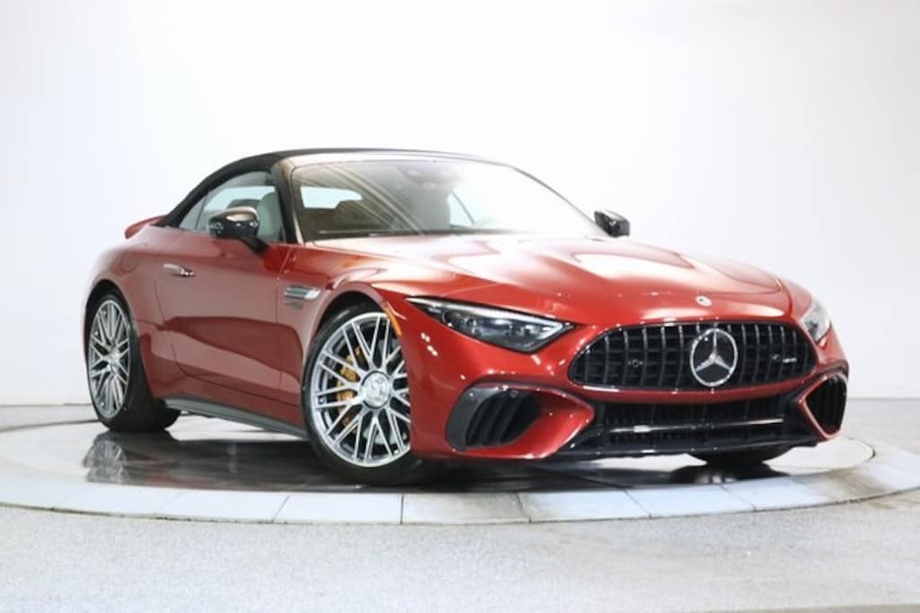STYLE Exclusive Macchiato Beige/Titanium Gray w/STYLE Exclusive Nappa Leather Upholstery, AMG® Carbon Ceramic Brakes, AMG® Exterior Carbon Fiber Package, AMG® Night Package II, Burmester® High-End 3D Surround Sound System, Dark Light Package, Driver Assistance Package, Energizing Air Control, Front Axle Lift System, Macchiato Beige Microfiber Headliner, MBUX Interior Assistant, Performance Trim Line, Wheel Locking Bolts, Wheels: 21" AMG® Forged Cross-Spoke Silver. 2022 Mercedes-Benz SL-Class SL 63 AMG® 4MATIC® 4MATIC® MANUFAKTUR Patagonia Red Metallic 4MATIC® 9-Speed Automatic 4.0L V8