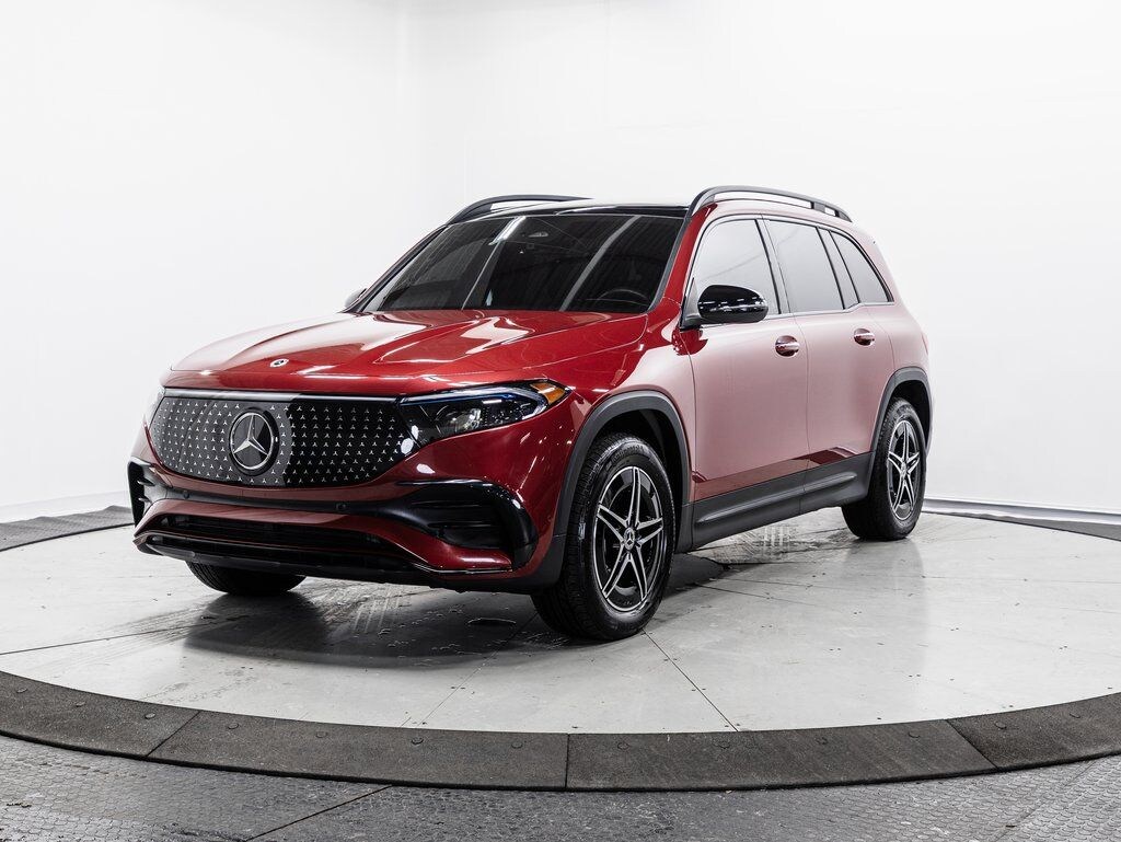 3rd Row Seats, AMG® Body Styling, AMG® Line, AMG® Line Floormats, AMG® Line w/Night Package, Black Roof Rails, Brushed Stainless Steel AMG® Sport Pedals, Garage Door Opener, Heated Front Seats, Heated Steering Wheel, Heated Windshield Wiper, Lowered Comfort Suspension, Multifunction Sport Nappa Leather Steering Wheel, Night Package, Panorama Roof, Sport Seats, Wheel Locking Bolts, Wheels: 7.5J x 18" ET 53.5 AMG® 5-Spoke, Winter Package. 2024 Mercedes-Benz EQB 300 4MATIC® 4MATIC® MANUFAKTUR Patagonia Red Metallic 4MATIC® 1-Speed Automatic Electric Motor