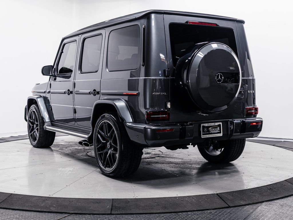 AMG® Carbon Fiber/Microfiber Steering Wheel, AMG® Line Package, AMG® Night Package (P56), Black Under Guard Protection, Brush Guard in Black, Drive-Dynamic Multicontour Front Seats w/Massage, ENERGIZING Comfort Control, Exclusive Interior Package Plus, Exclusive Nappa Leather Trim, Exterior Mirrors Painted in Obsidian Black, Front Ventilated Seats, Gunmetal Grey Front Grille, MANUFAKTUR Interior Package Plus, Rapid Heating Front Seats, Seat Comfort Package, Spare Wheel Cover in Obsidian Black, Wheel Locking Bolts, Wheels: 22" AMG® Matte Black Cross-Spoke Forged. 2024 Mercedes-Benz G-Class G 63 AMG® 4MATIC® 4MATIC® MANUFAKTUR Graphite Metallic 4MATIC® 9-Speed Automatic V8