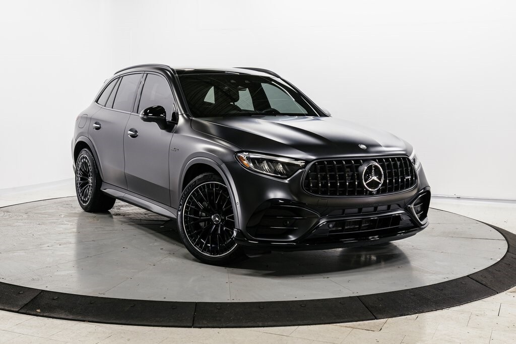 Active Lane Change Assist, Active Speed Limit Assist, AMG® Night Package Plus, AMG® Optics Package, AMG® Performance Studio Package, BAS PLUS w/Cross-Traffic Assist, Black Model Badging, Black Roof Rails, Darkened AMG® Grille, DISTRONIC PLUS® w/Steering Assist & Stop & Go Assist, Driver Assistance Package, Leather Upholstery, MBUX Navigation, PRE-SAFE®, PRE-SAFE® Brake w/Pedestrian Recognition, PRE-SAFE® Impulse Side, Route-Based Speed Adaptation, Wheel Locking Bolts, Wheels: 21" AMG® Y-Spoke Matte Black. 2024 Mercedes-Benz GLC 43 AMG® 4MATIC® 4MATIC® MANUFAKTUR Graphite Gray Magno 4MATIC® 9-Speed Automatic I4