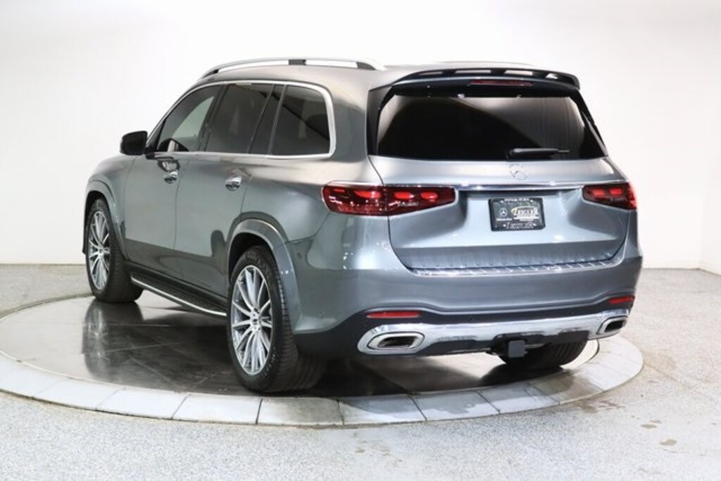 Acoustic Comfort Package, Chrome Door Handle Inserts, Dashcam, E-ACTIVE BODY CONTROL, E-ACTIVE BODY CONTROL Package, Electric Rear Side-Window Sunshades, Exclusive Nappa Leather Seat Trim, Infrared-Reflecting Glass, Load Sill Guard, MAGIC VISION CONTROL, MB-Tex Lower Dashboard & Door Beltline, Rear Side Airbags, Roof Spoiler, Trailer Hitch, Wheel Locking Bolts, Wheels: 22" AMG® Multi-Spoke. 2024 Mercedes-Benz GLS 580 4MATIC® 4MATIC® Selenite Gray Metallic 4MATIC® 9-Speed Automatic 4.0L V8