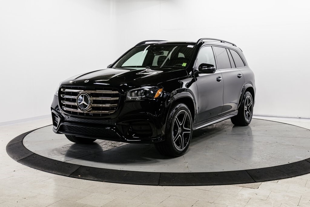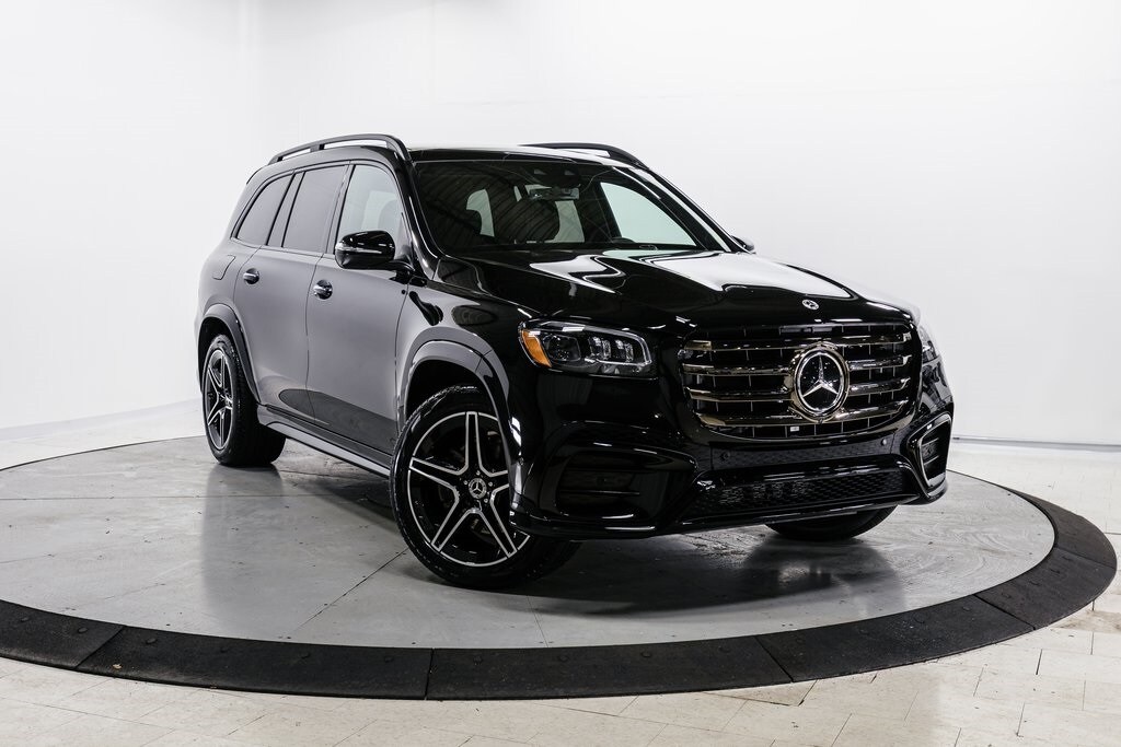 5-Zone Climate Control, Active Multicontour Front Seats with Massage Feature, AMG® Bodystyling, AMG® Brushed Stainless Steel Sports Pedals, AMG® Floor Mats, AMG® Line Exterior, AMG® Rear Apron, AMG® Side Skirts in Body Color, AMG® Sport 3-Twin-Spoke Steering Wheel, Dark Chrome Grille with 4 Slats, Electric Rear Side-Window Sunshades, Exclusive Line Package, Front and Rear Flared Wheel Arches in Body Color, Heated Rear Seats, Heated Steering Wheel, High-Gloss Black Elements, Large Front Brake System, MAGIC VISION CONTROL, Matte Black Roof Rails, MB-Tex Lower Dashboard and Door Beltline, Night Package, Rapid Heating Front Seats, Roof Spoiler, Soft-Close Doors, Trailer Hitch, Wheel Locking Bolts, Wheels: 21" AMG® Twin 5-Spoke Alloy with Black Accents. 2025 Mercedes-Benz GLS 450 4MATIC® 4MATIC® Black 4MATIC® 9-Speed Automatic 3.0L I6
