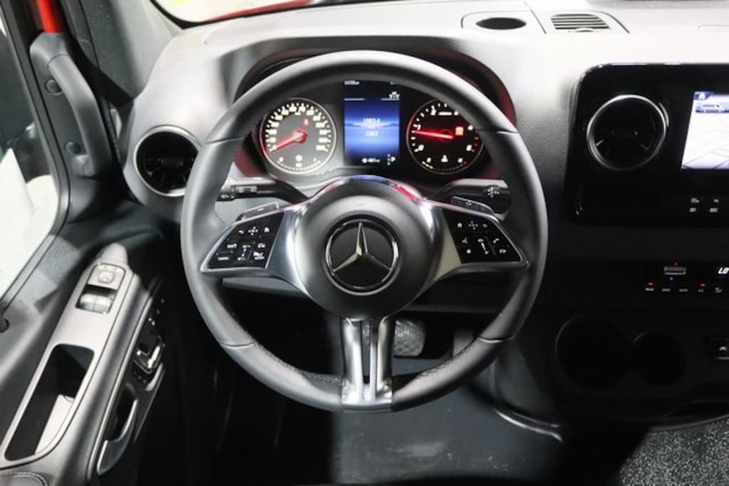 Jupiter Red 2025 Mercedes-Benz Sprinter 2500 Passenger 144 WB RWD 9-Speed Automatic 2.0L 4-Cylinder STANDARD REAR SEATS, Active Distance Assist DISTRONIC, Electric sliding door right, 2 Additional Master Keys, Acoustic Package, Active Distance Assist DISTRONIC®, Active Lane Keeping Assist, ATTENTION ASSIST®, Blind Spot Assist, Co-Driver Comfort Head Restraint, Co-Driver's Seat Lumbar Support, Comfort Overhead Control Panel, Comfort Package, Comfort Plus Package w/Heated Steering Wheel, Digital Rearview Mirror, Drive Assist Package, Driver Comfort Head Restraint, Driver Convenience Package, Driver Seat Base 12V Power Outlet, Driver's Seat Lumbar Support, Electrically Adjustable Co-Driver's Seat, Electrically Adjustable Driver's Seat, Electrically Folding Exterior Mirrors, Exterior Lighting Package, Fog Lamps w/Cornering Light Function, Front Compartment Heat Insulation, Heated Front Passenger Seat, Heated Steering Wheel, Heavy-Duty Rear Air Conditioner, High Beam Assist, High-Performance Air Conditioning Package, Hinged Lid for Left & Right Storage Compartments, Hinged Lid for Storage Compartment, Instrument Panel Front-to-Rear Outlet, Leather Steering Wheel, LED High Performance Headlamps, MBUX Package, Moving Off Information System, Partial LED Tail Lights, Pre-Installation for Navigation, Radio: MBUX Multimedia System w/10.25" Touchscreen, Sideguard Assist, Smartphone Integration Package, THERMOTRONIC Automatic Climate Control, Wet Wiper System, Winter Package Plus.