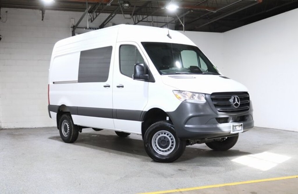 Arctic White 2025 Mercedes-Benz Sprinter 2500 4MATIC® 4MATIC® 9-Speed Automatic I4 High roof, Additional battery, co-driver seat base, Cutoff relay for additional battery, Extension of PSM standard contact, Hinged lid for storage compartment, Rear view camera (head unit display), Winter Package Plus, Crosswind Assist, 24.5 gallon fuel tank, Acoustic Package, All Wheel Drive Package, Co-Driver Comfort Head Restraint, Co-Driver's Seat Lumbar Support, Comfort Driver's Seat, Comfort Overhead Control Panel, Comfort Package, Comfort Package w/Seat Addition, Comfort Passenger's Seat, Driver Comfort Head Restraint, Driver's Seat Lumbar Support, Heated Steering Wheel, Instrument Panel Front-to-Rear Outlet, MBUX Package, Pre-Installation for Navigation, Radio: MBUX Multimedia System w/10.25" Touchscreen, Smartphone Integration Package.