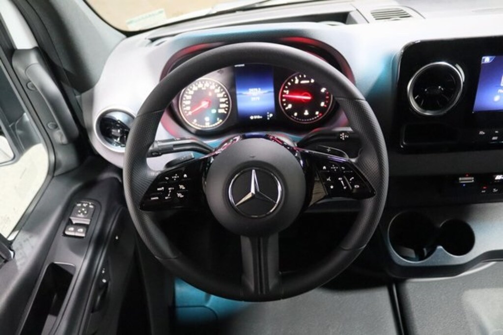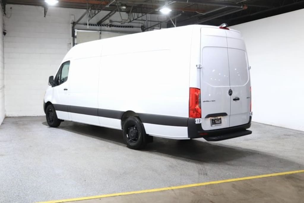 Arctic White 2025 Mercedes-Benz Sprinter 2500 Cargo 170 WB Extended RWD 9-Speed Automatic HO Cargo partition, Electrically folding exterior mirrors, Hinged lid for storage compartment, Rear view camera (head unit display), Blind Spot Assist, Sideguard Assist, Rims painted jet black, Door-mounted assist handles, driver & passenger, Bumper step, rear, grey, Active Brake Assist, Acoustic Package, Co-Driver Comfort Head Restraint, Co-Driver's Seat Lumbar Support, Comfort Driver's Seat, Comfort Overhead Control Panel, Comfort Package, Comfort Package w/Seat Addition, Comfort Passenger's Seat, Driver Comfort Head Restraint, Driver's Seat Lumbar Support, Instrument Panel Front-to-Rear Outlet, MBUX Package, Pre-Installation for Navigation, Radio: MBUX Multimedia System w/10.25" Touchscreen, Smartphone Integration Package.