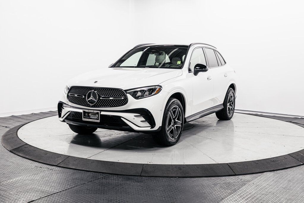 Polar White 2026 Mercedes-Benz GLC GLC 300 4MATIC® 4MATIC® 9-Speed Automatic I4 Advanced USB Package, AMG® Line, AMG® Line Body Styling, AMG® Line Exterior, AMG® Line Floor Mats, AMG® Line Interior, Black Roof Rails, Burmester® Sound System, Enhanced Ambient Lighting, Exclusive Line, Flat-Bottom Multifunction Sport Steering Wheel, GUARD 360, Heated Steering Wheel, High-Gloss Black Elements, Illuminated Door Sills, MB Navigation, MB-Tex Instrument Panel, MBUX Entertainment Plus, Night Package, Panorama Sunroof, Perforated Brake Discs, Sound Personalization, Surround View System, Ventilated Front Seats, Wheel Arch Trim Painted in Body Color, Wheel Locking Bolts, Wheels: 19" AMG® 5-Spoke w/Black Accents.