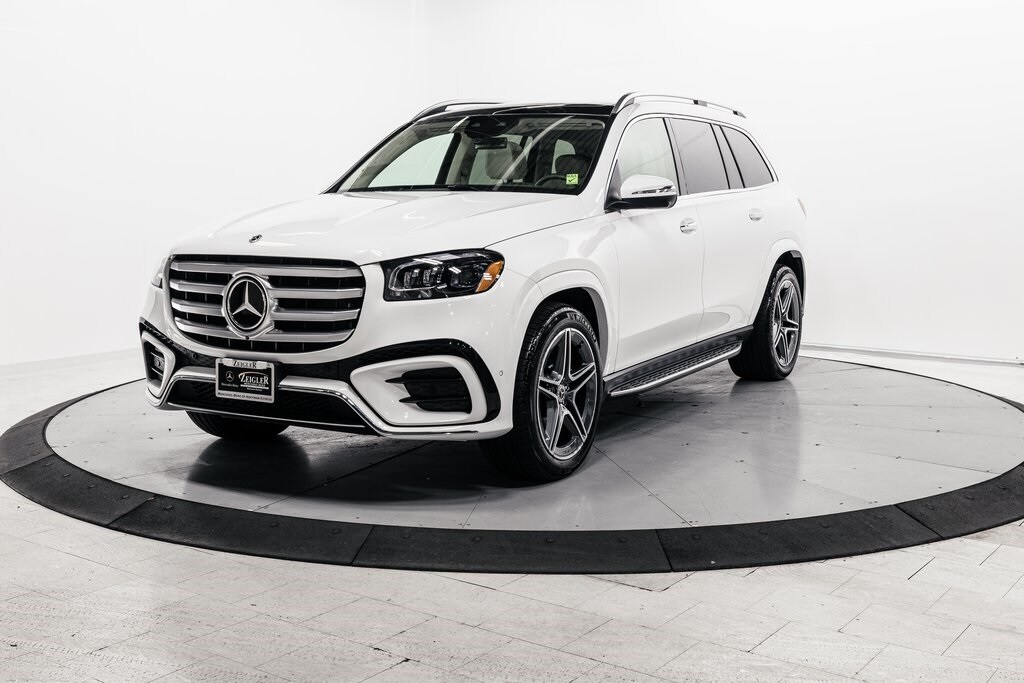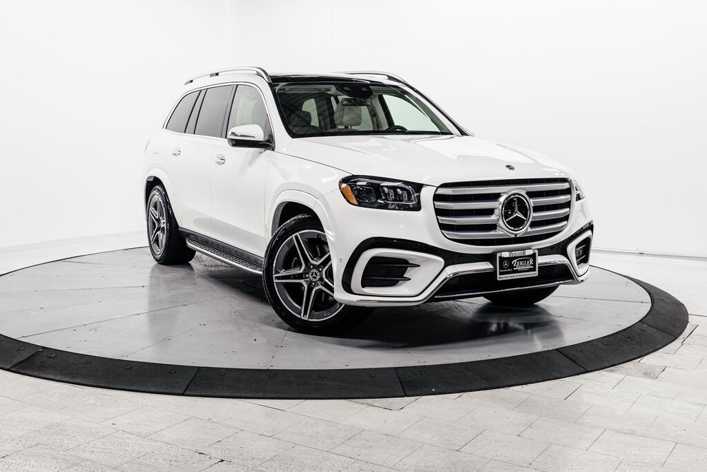 Polar White 2026 Mercedes-Benz GLS GLS 450 4MATIC® 4MATIC® 9-Speed Automatic 3.0L I6 5-Zone Climate Control, AMG® Bodystyling, AMG® Brushed Stainless Steel Sports Pedals, AMG® Floor Mats, AMG® Line Exterior, AMG® Rear Apron, AMG® Side Skirts in Body Color, AMG® Sport 3-Twin-Spoke Steering Wheel, Front and Rear Flared Wheel Arches in Body Color, Heated Steering Wheel, Illuminated Running Boards, Large Front Brake System, Wheel Locking Bolts.