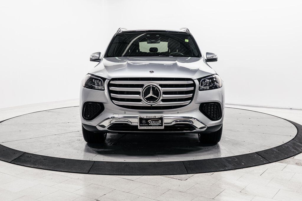 Silver 2026 Mercedes-Benz GLS GLS 450 4MATIC® 4MATIC® 9-Speed Automatic 3.0L I6 2nd Row Bench Seating, All Season Tires, 12.3" Center Display, HANDS FREE ACCESS, ABS brakes, Active Cruise Control, Compass, Electronic Stability Control, Front Bucket Seats, Front dual zone A/C, Heated door mirrors, Heated Rear Seats, Illuminated entry, Low tire pressure warning, Navigation System, Power Liftgate, Power passenger seat, Rear dual zone A/C, Remote keyless entry, Split folding rear seat, Traction control, Ventilated front seats, Wheels: 21" Triple 5-Spoke.