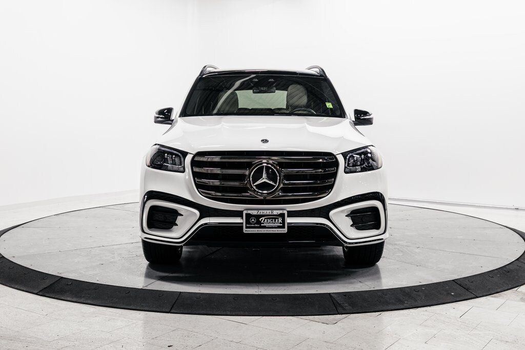 Polar White 2026 Mercedes-Benz GLS GLS 450 4MATIC® 4MATIC® 9-Speed Automatic 3.0L I6 2nd Row Captain Seats, ABS brakes, Active Cruise Control, AMG® Bodystyling, AMG® Brushed Stainless Steel Sports Pedals, AMG® Floor Mats, AMG® Line Exterior, AMG® Rear Apron, AMG® Side Skirts in Body Color, AMG® Sport 3-Twin-Spoke Steering Wheel, Apple CarPlay®/Android Auto®, Brake assist, Compass, Dashcam, Electronic Stability Control, Front and Rear Flared Wheel Arches in Body Color, Front Bucket Seats, Front dual zone A/C, Heated door mirrors, Heated Rear Seats, Illuminated entry, Large Front Brake System, Low tire pressure warning, Navigation System, Power Liftgate, Power passenger seat, Rear dual zone A/C, Remote keyless entry, Split folding rear seat, Traction control, Ventilated front seats.