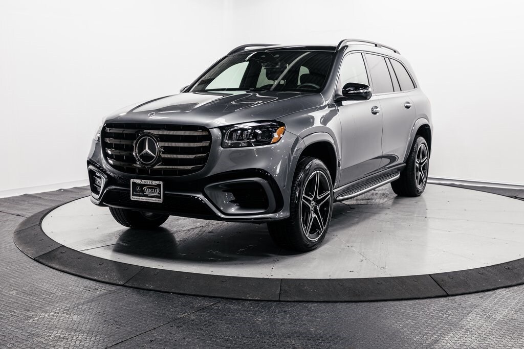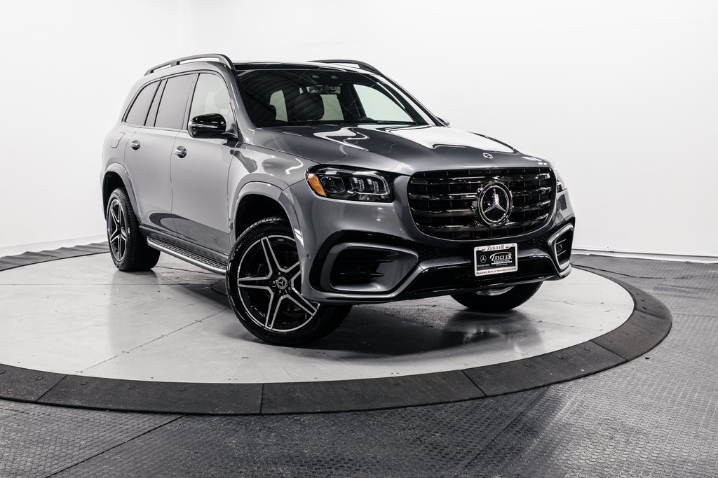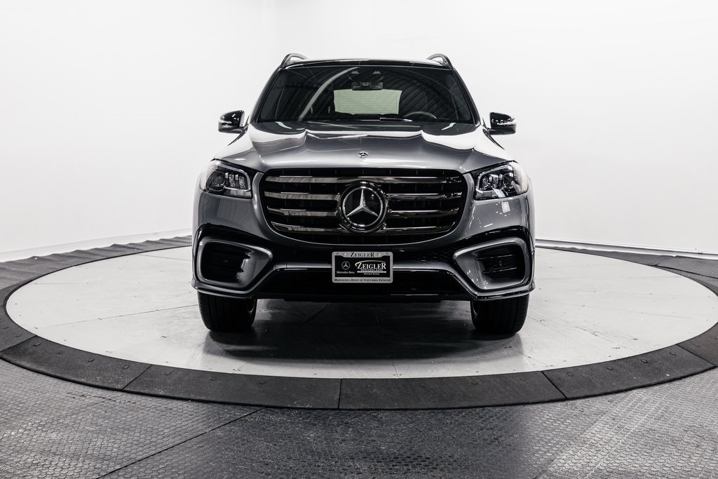 Grey 2026 Mercedes-Benz GLS GLS 450 4MATIC® 4MATIC® 9-Speed Automatic 3.0L I6 2nd Row Captain Seats, 5-Zone Climate Control, All Season Tires, ABS brakes, Active Cruise Control, AMG® Bodystyling, AMG® Brushed Stainless Steel Sports Pedals, AMG® Floor Mats, AMG® Line Exterior, AMG® Rear Apron, AMG® Side Skirts in Body Color, AMG® Sport 3-Twin-Spoke Steering Wheel, Compass, Dashcam, Electronic Stability Control, Front and Rear Flared Wheel Arches in Body Color, Front Bucket Seats, Front dual zone A/C, Head-Up Display, Heated door mirrors, Heated Rear Seats, High-Gloss Black Elements, Illuminated entry, Large Front Brake System, Low tire pressure warning, Matte Black Roof Rails, Navigation System, Night Package, Power Liftgate, Power passenger seat, Rear dual zone A/C, Remote keyless entry, Soft-Close Doors, Split folding rear seat, Traction control, Ventilated front seats.