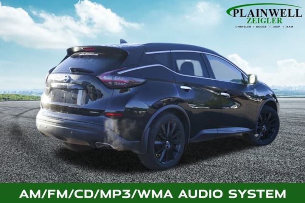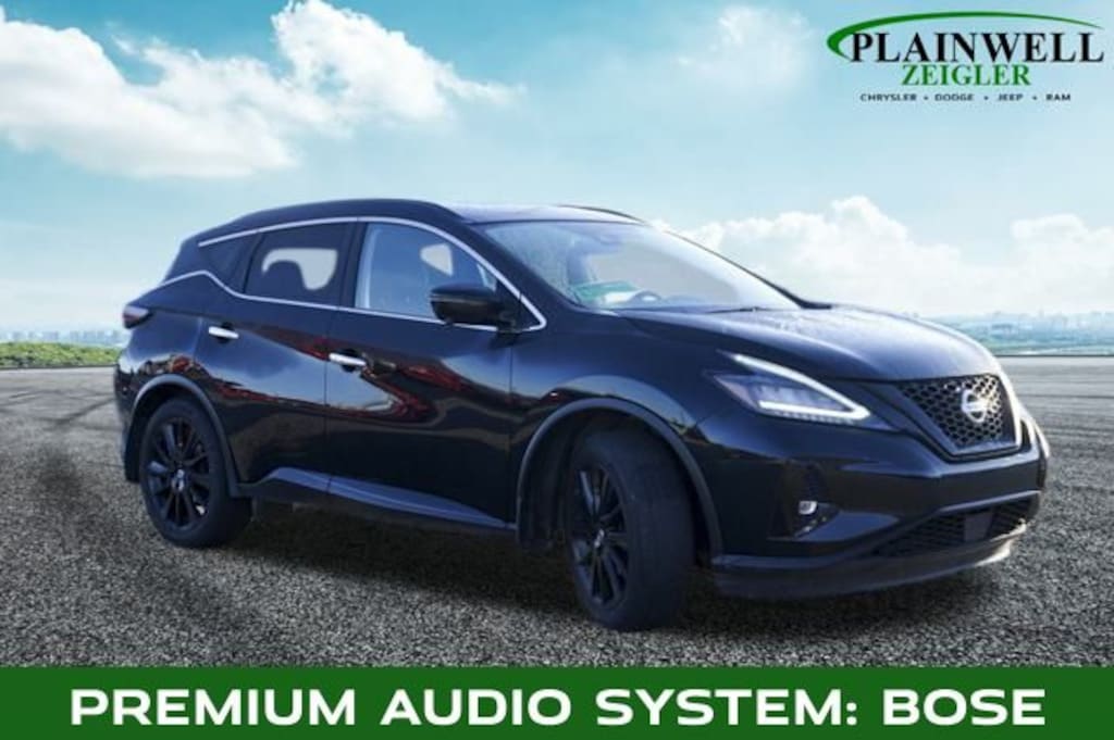 Magnetic Black Pearl 2022 Nissan Murano SL AWD CVT with Xtronic 3.5L V6 DOHC 24V CVT with Xtronic, AWD, 11 Speakers, Air Conditioning, AM/FM radio: SiriusXM, AM/FM/CD/MP3/WMA Audio System, Auto High-beam Headlights, Auto-dimming Rear-View mirror, Blind Spot Warning, Brake assist, Delay-off headlights, Dual Panel Panoramic Moonroof, Electronic Stability Control, Exterior Parking Camera Rear, Front fog lights, Garage door transmitter: HomeLink, Heated door mirrors, Memory seat, Navigation system: NissanConnect Navigation, Panic alarm, Power door mirrors, Power driver seat, Power steering, Power windows, Premium audio system: Bose, Rear window wiper, Remote keyless entry, Roof rack: rails only, Roof Rail Delete, Security system, SL Moonroof Package, Speed control, Speed-Sensitive Wipers, Spoiler, Steering wheel mounted audio controls, Turn signal indicator mirrors, Variably intermittent wipers, Wheels: 20" Machined Aluminum-Alloy.
