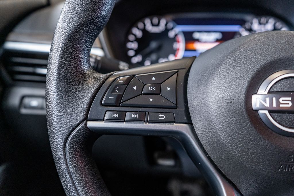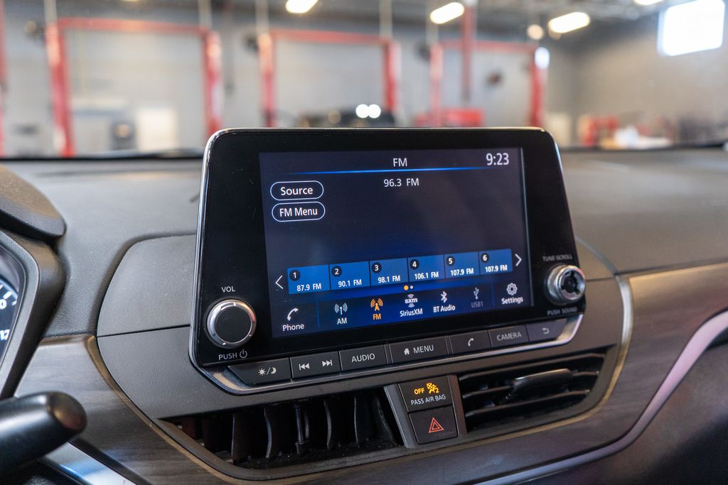 Clean History Report Showing No Accidents, 17" Machined Alloy Wheels, Blind Spot Warning, Bumpers: body-color, Cloth Seat Trim, Floor Mats/Trunk Mat/Hideaway Net, Fully automatic headlights, Illuminated entry, NissanConnect featuring Apple CarPlay and Android Auto, Remote keyless entry, Steering wheel mounted audio controls.