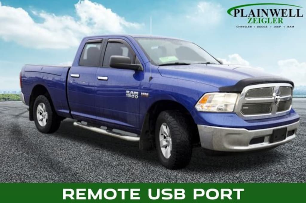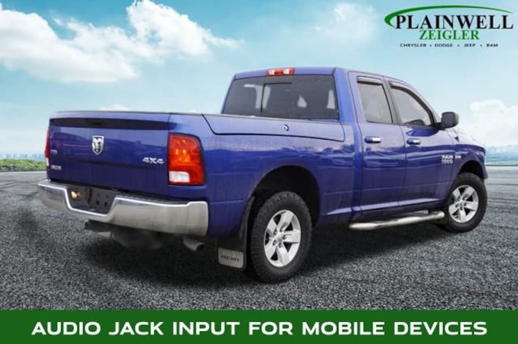 Blue Streak Pearlcoat 2017 Ram 1500 SLT 4WD 8-Speed Automatic HEMI 5.7L V8 Multi Displacement VVT 3.21 Rear Axle Ratio, 32 Gallon Fuel Tank, 4 Adjustable Cargo Tie-Down Hooks, 4-Wheel Disc Brakes, 40/20/40 Split Bench Seat, ABS brakes, Active Grille Shutters, Air Conditioning, Alloy wheels, AM/FM radio, Audio Jack Input for Mobile Devices, Bed Cargo Divider/Extender, Black Exterior Mirrors, Brake assist, Bumpers: chrome, Charge Only Remote USB Port, Class IV Receiver Hitch, Cloth 40/20/40 Bench Seat, Compass, Delay-off headlights, Driver door bin, Dual front side impact airbags, Electronic Shift, Electronic Stability Control, Exterior Mirrors w/Heating Element, Front anti-roll bar, Front Armrest w/3 Cupholders, Front Center Armrest w/Storage, Front wheel independent suspension, Heated door mirrors, Illuminated entry, Integrated Voice Command w/Bluetooth, LED Bed Lighting, Media Hub (USB, AUX), Occupant sensing airbag, Overhead airbag, Overhead console, Passenger door bin, Passenger vanity mirror, Power steering, Power windows, Quick Order Package 27G SLT, RamBox Cargo Management System, Rear anti-roll bar, Remote keyless entry, Remote USB Port, Rotary Shifter-Black, Speed control, Spray In Bedliner, Tachometer, Tilt steering wheel, Tip Start, Traction control, Variably intermittent wipers.