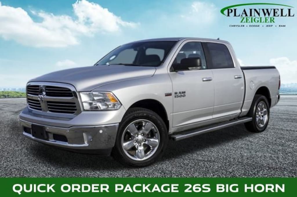 Bright Silver Metallic Clearcoat 2017 Ram 1500 Big Horn 4WD 8-Speed Automatic HEMI 5.7L V8 Multi Displacement VVT 115V Auxiliary Power Outlet, 18" 5-Spoke Painted Aluminum Wheels, 40/20/40 Split Bench Seat, 6 Month Trial (Reg. Required), 6 Month Trial (Registration Required), 8.4" Touchscreen Display, Air Conditioning ATC w/Dual Zone Control, Audio Jack Input for Mobile Devices, Auto-Dimming Exterior Mirrors, Auto-Dimming Rear-View Mirror, Big Horn Badge, Big Horn Regional Package, Brake assist, Bright/Bright Billets Grille, Charge Only Remote USB Port, Class IV Receiver Hitch, Dual Rear Exhaust w/Bright Tips, Electric Shift-On-Demand Transfer Case, Electroluminescent Instrument Cluster, Electronic Stability Control, Exterior Mirrors Courtesy Lamps, Exterior Mirrors w/Supplemental Signals, Fog Lamps, Folding Flat Load Floor Storage, For Details Visit DriveUconnect.com, Front Armrest w/3 Cupholders, Front Center Seat Cushion Storage, Glove Box Lamp, GPS Antenna Input, Heated Front Seats, Heated Seats & Wheel Group (DISC), Heated Steering Wheel, Integrated Voice Command w/Bluetooth, Leather Wrapped Steering Wheel, LED Bed Lighting, Media Hub (USB, AUX), Nav-Capable! See Dealer for Details, Overhead Console w/Garage Door Opener, Panic alarm, ParkSense Front/Rear Park Assist System, ParkView Rear Back-Up Camera, Power 10-Way Driver Seat, Power Heated Fold-Away Mirrors, Power Lumbar Adjust, Power-Folding Mirrors, Premium Cloth 40/20/40 Bench Seat, Quick Order Package 26S Big Horn, Radio: Uconnect 3C w/8.4" Display, Rear 60/40 Split Folding Seat, Rear Dome w/On/Off Switch Lamp, Remote USB Port, Security Alarm, SIRIUSXM Satellite Radio, Steering Wheel Mounted Audio Controls, Storage Tray, Sun Visors w/Illuminated Vanity Mirrors, Uconnect Access, Underhood Lamp, Universal Garage Door Opener, Wheels: 20" x 8" Aluminum Chrome Clad.