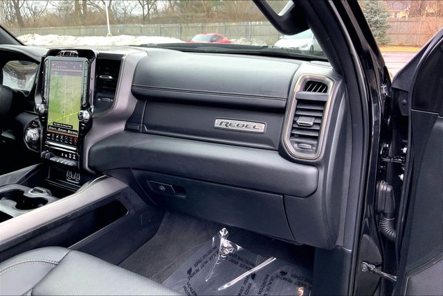 2021 Ram 1500 Rebel Diamond Black Crystal Pearlcoat **LEATHER**, **NAVIGATION**, **PANORAMIC ROOF**, **BLUE TOOTH**, **HEATED STEERING WHEEL**, **LOCAL TRADE**, **PARKVIEW REAR BACK-UP CAMERA**, **PARKSENSE REAR PARK ASSIST**, **TOW PACKAGE**, **HEATED SEATS**,, 1-Yr SiriusXM Guardian Trial, 115V Auxiliary Rear Power Outlet, 12" Touchscreen Display, 4 Way Front Headrests, 4G LTE Wi-Fi Hot Spot, 5-Year SiriusXM Traffic Service, 5-Year SiriusXM Travel Link Service, Adaptive Cruise Control w/Stop & Go, Advanced Safety Group, Air Conditioning ATC w/Dual Zone Control, Apple CarPlay, Auto High Beam Headlamp Control, Auto-Dimming Exterior Driver Mirror, Black Premium Power Mirrors, Body Color Door Handles, Bucket Seats, Disassociated Touchscreen Display, Exterior Mirrors Courtesy Lamps, Exterior Mirrors w/Supplemental Signals, Foam Bottle Insert (Door Trim Panel), For Details, Visit DriveUconnect.com, For More Info, Call 800-643-2112, Front Seat Back Map Pockets, Full Length Upgraded Floor Console, Google Android Auto, GPS Antenna Input, GPS Navigation, harman/kardon 19 Speaker Premium Sound, HD Radio, Heated Front Seats, Heated Steering Wheel, Integrated Center Stack Radio, Integrated Voice Command w/Bluetooth, Lane Keep Assist, LED Footwell Lighting, Lux Leather Trimmed Bucket Seats, Media Hub w/2 Charge Only USBs, Parallel & Perp Park Assist w/Stop, ParkSense Front/Rear Park Assist w/Stop, Pedestrian Emergency Braking, Power 4-Way Driver Lumbar Adjust, Power 4-Way Passenger Lumbar Adjust, Power 8-Way Driver & Passenger Seats, Power Adjustable Pedals, Power-Folding Mirrors, Quick Order Package 25W Rebel, Radio: Uconnect 12 w/Navigation, Radio: Uconnect 4 w/8.4" Display, Rain Sensitive Windshield Wipers, Rear 60/40 Folding Seat, Rear Dome w/On/Off Switch Lamp, Rear Underseat Compartment Storage, Rear Window Defroster, Rebel 12, Rebel Level 2 Equipment Group, Remote Proximity Keyless Entry, Security Alarm, SiriusXM Radio Service, SiriusXM Satellite Radio, SiriusXM Traffic Plus, SiriusXM Travel Link, SiriusXM w/360L, Sun Visors w/Illuminated Vanity Mirrors, Surround View Camera System, Universal Garage Door Opener, USB Host Flip. 15/21 City/Highway MPG The value of used vehicles varies with mileage, usage and condition. Book values should be considered estimates only. Some of our used vehicles may be subject to unrepaired safety recalls. Check for a vehicle's unrepaired recalls by VIN at http://vinrcl.safercar.gov/vin/ Awards: