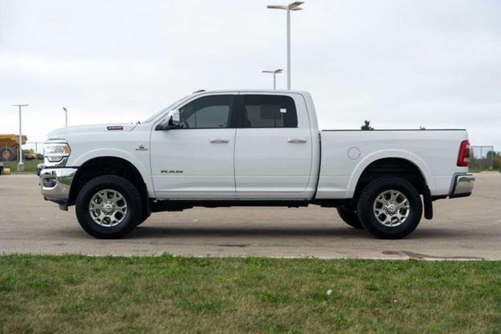 4WD, NAVIGATION, APPLE CARPLAY, ANDROID AUTO, BLIND SPOT MONITOR, LANE DEPARTURE WARNING, PARKING SENSORS, LEATHER INTERIOR, HEATED STEERING WHEEL, HEATED SEATS, COOLED SEATS, HEATED REAR SEATS, MEMORY SEATS, RUNNING BOARDS, BACKUP CAMERA, KEYLESS ENTRY, BLUETOOTH, HARMON KARDON PREMIUM AUDIO, 1-Year SiriusXM Guardian Trial, 115V Auxiliary Rear Power Outlet, 12" Touchscreen Display, 17 Speaker harman kardon Premium Sound, 2 Way Rear Headrest Seat, 220 Amp Alternator, 2nd Row In Floor Storage Bins, 3.73 Axle Ratio, 4 Way Front Headrests, 4-Wheel Disc Brakes, 4G LTE Wi-Fi Hot Spot, 5-Year SiriusXM Traffic Service, 8.4" Touchscreen Display, ABS brakes, Adjustable pedals, Air Conditioning, Anti-Spin Differential Rear Axle, Apple CarPlay, Apple CarPlay/Android Auto, Auto High Beam Headlamp Control, Auto-dimming Rear-View mirror, Automatic temperature control, Blind Spot & Cross Path Detection (DISC), Brake assist, Bumpers: chrome, Clearance Lamps, Cold Weather Group, Compass, Dash Pass Thru Wire Circuits, Delay-off headlights, Disassociated Touchscreen Display, Driver door bin, Driver vanity mirror, Dual front impact airbags, Dual front side impact airbags, Electronic Stability Control, Electronically Controlled Throttle, Engine Block Heater, Exterior Mirrors w/Memory, Foam Bottle Insert (Door Trim Panel), For Details Visit DriveUconnect.com, Front anti-roll bar, Front Center Armrest w/Storage, Front dual zone A/C, Front fog lights, Front reading lights, Front Seat Back Map Pockets, Fully automatic headlights, Garage door transmitter, Google Android Auto, GPS Navigation, Heated door mirrors, Heated Front Seats, Heated Second Row Seats, Heated Steering Wheel, High Back Seats, I/P Mounted Auxiliary Switches, Illuminated entry, Integrated Voice Command w/Bluetooth, Laramie Level 2 Equipment Group (DISC), Leather steering wheel, Leather Trim 40/20/40 Bench Seat, Low tire pressure warning, Mirror-Mounted Aux Reverse Lamps, MOPAR Winter Front Grille Cover, Occupant sensing airbag, Off-Road Information Pages, Outside temperature display, Overhead airbag, Overhead console, Panic alarm, ParkView Rear Back-Up Camera, Passenger door bin, Passenger vanity mirror, Power 2-Way Driver Lumbar Adjust, Power 2-Way Passenger Lumbar Adjust, Power Adjust 8-Way Driver Seat, Power Adjust 8-Way Front Passenger Seat, Power Adjustable Convex Aux Mirrors, Power Adjustable Pedals w/Memory, Power Chrome Tow Mirrors w/Convex Spotter & Memory, Power Deployable Running Boards, Power door mirrors, Power driver seat, Power passenger seat, Power steering, Power windows, Quick Order Package 2HH Laramie, Radio: Uconnect 4C Nav w/8.4" Display, Radio/Driver Seat/Mirrors/Pedals Memory, Rain Sensitive Windshield Wipers, Rear 60/40 Folding Seat, Rear anti-roll bar, Rear reading lights, Rear seat center armrest, Rear step bumper, Rear window defroster, Remote keyless entry, Remote Tailgate Release, Security system, SiriusXM Traffic Plus, SiriusXM Travel Link, Snow Chief Group, Speed control, Split folding rear seat, Steering wheel mounted audio controls, Tachometer, Tilt steering wheel, Tip Start, Tow Hooks, Traction control, Trip computer, Turn signal indicator mirrors, Variably intermittent wipers, Vendor Painted Cargo Box Tracking, Ventilated Front Seats, Voltmeter, Wheels: 18" x 8.0" Polished Aluminum.