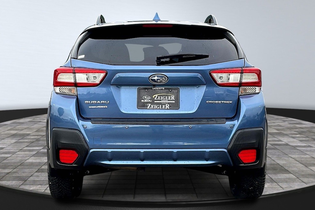 2019 Subaru Quartz Blue Pearl AWD Crosstrek 2.0i Limited Lineartronic CVT 18" Alloy Wheels, 3.90 Axle Ratio, 4-Wheel Disc Brakes, 6 Speakers, ABS brakes, Air Conditioning, Alloy wheels, AM/FM radio: SiriusXM, Auto High-beam Headlights, Automatic temperature control, Brake assist, Bumpers: body-color, CD player, Driver door bin, Driver vanity mirror, Dual front impact airbags, Dual front side impact airbags, Electronic Stability Control, Emergency communication system: STARLINK Safety and Security, Exterior Parking Camera Rear, Four wheel independent suspension, Front anti-roll bar, Front Bucket Seats, Front Center Armrest, Front fog lights, Front reading lights, Fully automatic headlights, Heated door mirrors, Heated Front Bucket Seats, Heated front seats, Illuminated entry, Knee airbag, Leather Shift Knob, Leather-Trimmed Upholstery, Low tire pressure warning, Occupant sensing airbag, Outside temperature display, Overhead airbag, Overhead console, Panic alarm, Passenger door bin, Passenger vanity mirror, Power door mirrors, Power driver seat, Power steering, Power windows, Radio data system, Radio: Subaru Starlink 8.0" Multimedia Plus System, Rear anti-roll bar, Rear seat center armrest, Rear window defroster, Rear window wiper, Remote keyless entry, Roof rack: rails only, Security system, Speed control, Speed-sensing steering, Split folding rear seat, Spoiler, STARLINK/Apple CarPlay/Android Auto, Steering wheel mounted audio controls, Subaru Starlink Smartphone Integration, Tachometer, Telescoping steering wheel, Tilt steering wheel, Traction control, Trip computer, Turn signal indicator mirrors, and Variably intermittent wipers.