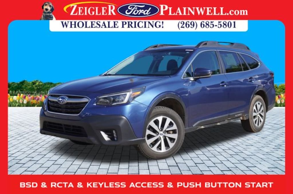 2022 Subaru Outback Premium AWD POWER MOONROOF NAVIGATION ADAPTIVE CRUISE REAR CAMERA - NON SMOKER LOCAL TRADE IN CLEAN - Abyss Blue Pearl 2.5L 4-Cylinder DOHC 16V AM/FM radio: SiriusXM, Auto High-beam Headlights, Auto-Dimming Mirror w/Compass & HomeLink, Blind Spot Detection (BSD), Brake assist, BSD & RCTA & Keyless Access & Push Button Start, Electronic Stability Control, Emergency communication system: STARLINK Safety and Security (Subscription Required), Exterior Parking Camera Rear, Hands-Free Power Rear Gate, Heated door mirrors, Heated Front Bucket Seats, Keyless Access w/Push Button Start, Power door mirrors, Power Moonroof, Radio: Subaru STARLINK 11.6" Multimedia Nav System, Rear Cross Traffic Alert (RCTA), Remote keyless entry, Security system, Steering wheel mounted audio controls, Turn signal indicator mirrors, Wheels: 17" x 7J Black Aluminum Alloy. 26/33 City/Highway MPG