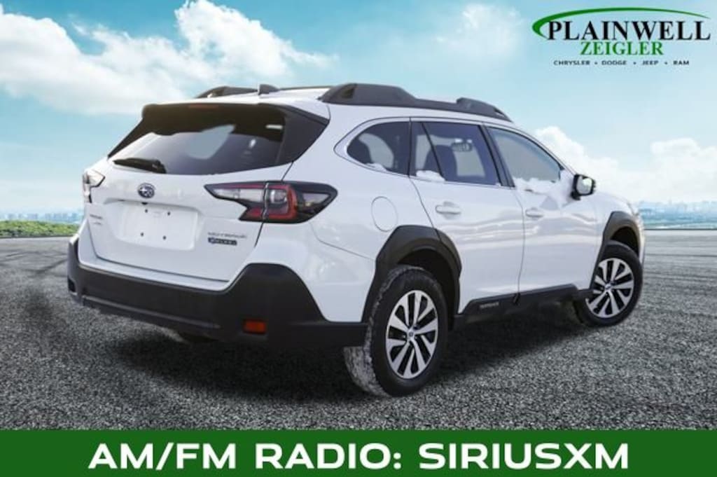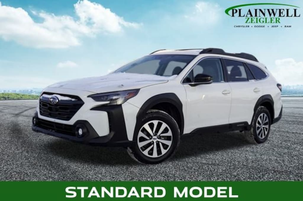 Crystal White Pearl 2024 Subaru Outback Premium AWD CVT Lineartronic 2.5L 4-Cylinder DOHC 16V 4-Wheel Disc Brakes, ABS brakes, Air Conditioning, AM/FM radio: SiriusXM, Auto High-beam Headlights, Brake assist, Bumpers: body-color, Cloth Upholstery, Driver door bin, Driver vanity mirror, Dual front impact airbags, Dual front side impact airbags, Electronic Stability Control, Emergency communication system: STARLINK Safety Plus (3-year free trial), Exterior Parking Camera Rear, Four wheel independent suspension, Front anti-roll bar, Front Bucket Seats, Front Center Armrest w/Storage, Front dual zone A/C, Front fog lights, Front reading lights, Heated door mirrors, Heated Front Bucket Seats, Heated front seats, Illuminated entry, Knee airbag, Leather Shift Knob, Leather steering wheel, Low tire pressure warning, Occupant sensing airbag, Outside temperature display, Overhead airbag, Overhead console, Panic alarm, Passenger door bin, Passenger vanity mirror, Power door mirrors, Power driver seat, Power steering, Power windows, Radio: Subaru STARLINK 11.6" Multimedia Plus Sys, Rear anti-roll bar, Rear seat center armrest, Rear window defroster, Rear window wiper, Remote keyless entry, Roof rack, Security system, Speed control, Speed-sensing steering, Split folding rear seat, Spoiler, Standard Model, Steering wheel mounted audio controls, Tachometer, Tilt steering wheel, Traction control, Trip computer, Turn signal indicator mirrors, Variably intermittent wipers, Wheels: 17" x 7J Black Aluminum-Alloy.