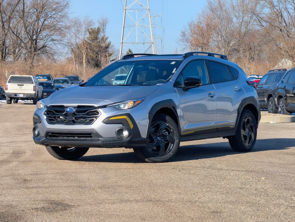Recent Arrival! 2025 Subaru Certified. THIS 2025 Subaru Certified Crosstrek qualifies for NEW Car Rates-as low as 1.9%(with approved credit) Ice Silver Metallic AWD Crosstrek Sport Lineartronic CVT Odometer is 859 miles below market average! BSD/RCTA & Power Driver Seat & Power Moonroof (10-Way Power Driver's Seat, Blind Spot Detection (BSD), Power Moonroof, and Rear Cross-Traffic Alert (RCTA) System), 4-Wheel Disc Brakes, 6 Speakers, ABS brakes, Air Conditioning, All-Weather Floor Liners, Alloy wheels, AM/FM radio: SiriusXM, Anti-whiplash front head restraints, Auto High-beam Headlights, Auto-Dimming Mirror w/Compass & HomeLink, Automatic temperature control, Brake assist, Bumpers: body-color, Driver door bin, Driver vanity mirror, Dual front impact airbags, Dual front side impact airbags, Electronic Stability Control, Emergency communication system, Exterior Parking Camera Rear, Four wheel independent suspension, Front anti-roll bar, Front Bucket Seats, Front Center Armrest, Front dual zone A/C, Front fog lights, Front reading lights, Fully automatic headlights, Heated door mirrors, Heated Front Bucket Seats, Heated front seats, Illuminated entry, Knee airbag, Leather Shift Knob, Leather steering wheel, LED Upgrade, Low tire pressure warning, Occupant sensing airbag, Outside temperature display, Overhead airbag, Overhead console, Panic alarm, Passenger door bin, Passenger vanity mirror, Power door mirrors, Power steering, Power windows, Radio data system, Radio: Subaru 11.6" Multimedia Plus System, Rear anti-roll bar, Rear Bumper Cover, Rear seat center armrest, Rear Seatback Protector, Rear window defroster, Rear window wiper, Remote keyless entry, Security system, Speed control, Speed-sensing steering, Split folding rear seat, Spoiler, Sport Cloth Upholstery, Steering wheel mounted audio controls, Tachometer, Telescoping steering wheel, Tilt steering wheel, Traction control, Trip computer, Turn signal indicator mirrors, Variably intermittent wipers, and Wheels: 18" x 7.0" J Dark Gray Aluminum-Alloy.