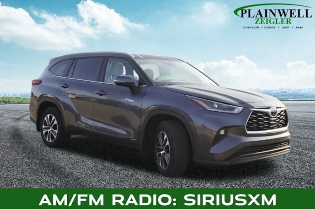 Magnetic Gray Metallic 2021 Toyota Highlander Hybrid XLE AWD eCVT 2.5L I4 PDI Hybrid DOHC 16V LEV3-SULEV30 186hp 2.5L I4 PDI Hybrid DOHC 16V LEV3-SULEV30 186hp, 3rd row seats: split-bench, 6 Speakers, AM/FM radio: SiriusXM, Apple CarPlay/Android Auto, Auto High-beam Headlights, Auto-dimming Rear-View mirror, Brake assist, Bumpers: body-color, Delay-off headlights, Electronic Stability Control, Exterior Parking Camera Rear, Front Bucket Seats, Front Center Armrest, Front dual zone A/C, Front fog lights, Front reading lights, Heated door mirrors, Heated Front Bucket Seats, Heated front seats, Navigation System, Panic alarm, Power door mirrors, Power driver seat, Power Liftgate, Power moonroof, Power passenger seat, Power steering, Power windows, Radio: Audio Plus (T1 Hi), Radio: Premium Audio w/Navigation, Rear air conditioning, Rear window defroster, Rear window wiper, Reclining 3rd row seat, Remote keyless entry, Roof rack: rails only, Security system, SofTex Seat Trim, Speed control, Split folding rear seat, Spoiler, Steering wheel mounted audio controls, Turn signal indicator mirrors, Variably intermittent wipers, Wheels: 18" Machined-Finish Alloy.